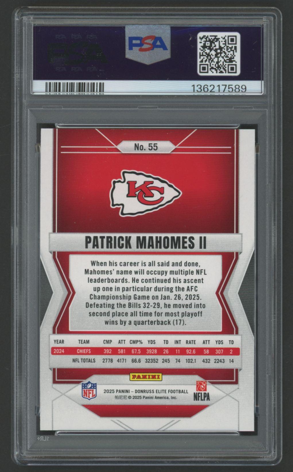 Patrick Mahomes II 2025 Donruss Elite #55 (PSA 10)