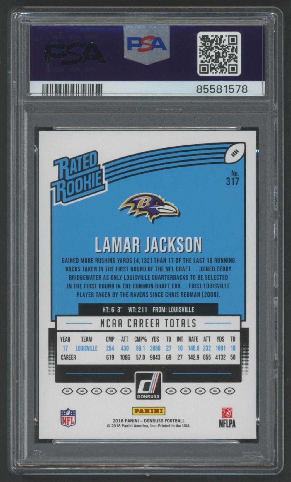 Lamar Jackson 2018 Donruss #317 RR RC (PSA 9)