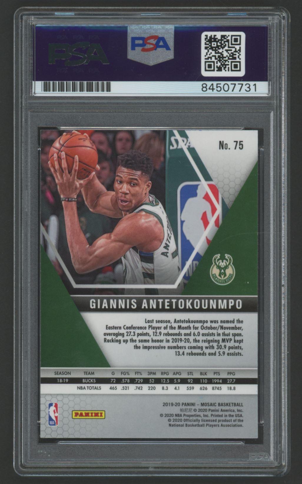 Giannis Antetokounmpo Signed 2019 Panini Mosaic #75 (PSA)