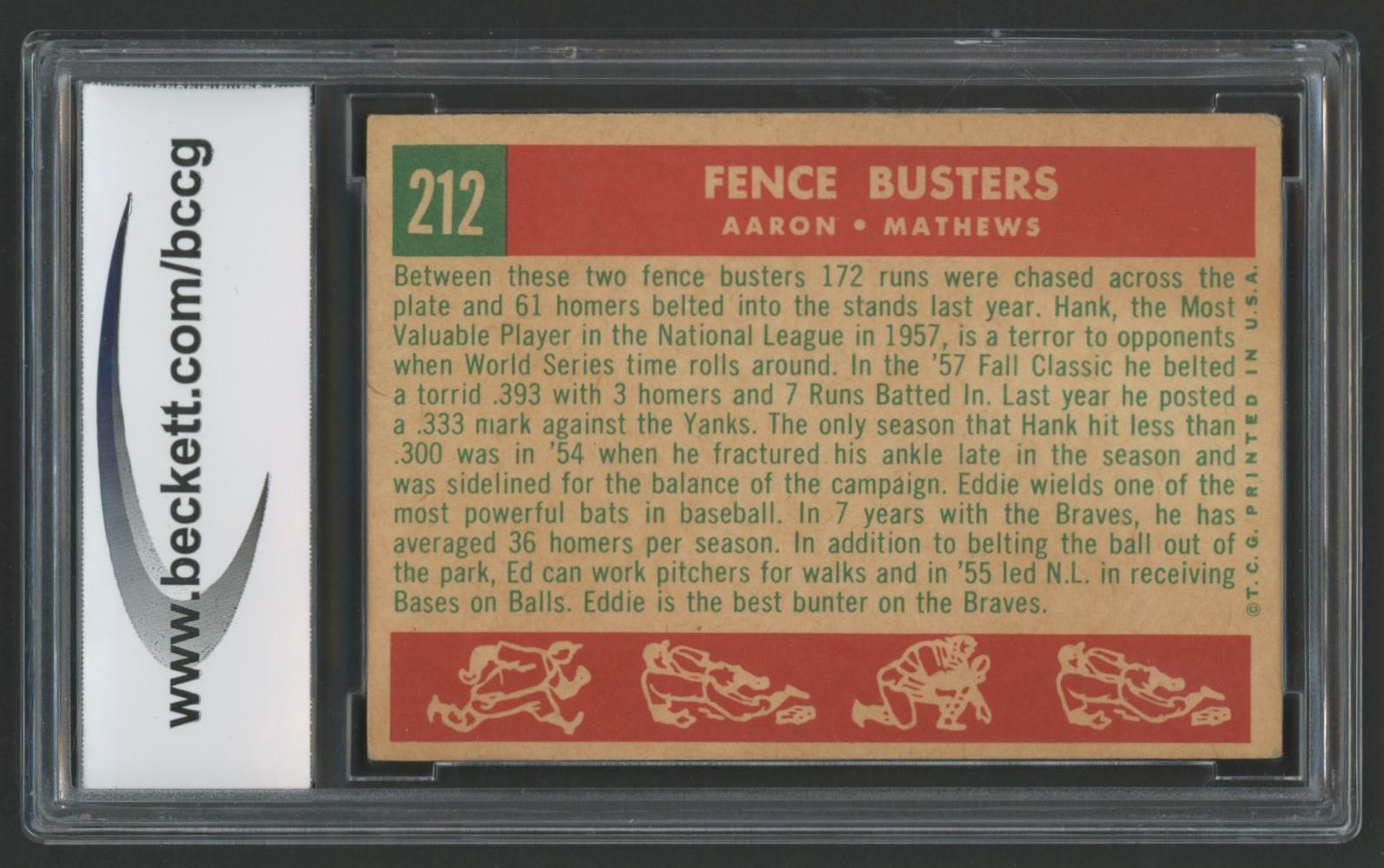 Hank Aaron / Eddie Mathews 1959 Topps #212 Fence Busters (BCCG 8)