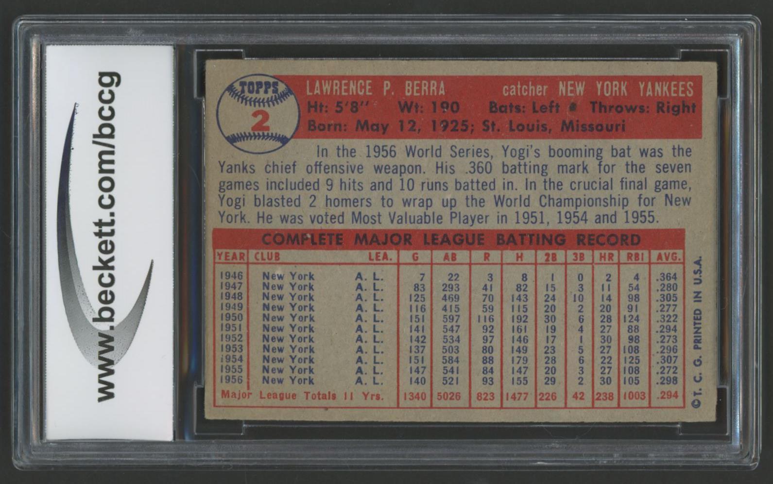 Yogi Berra 1957 Topps #2 (BCCG 7)