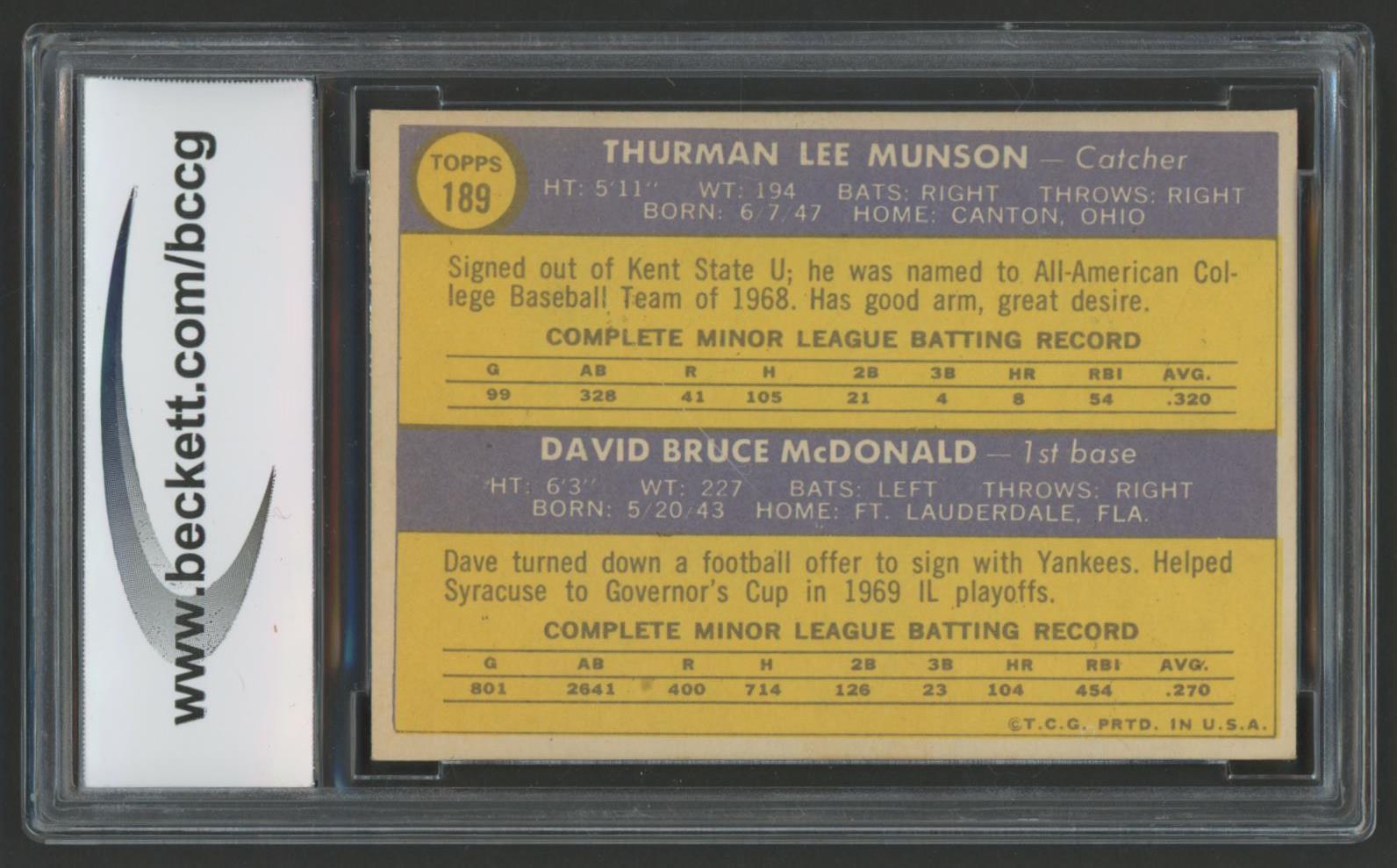 Thurman Munson / Dave McDonald 1970 Topps #189 Rookie Stars RC (BCCG 9)