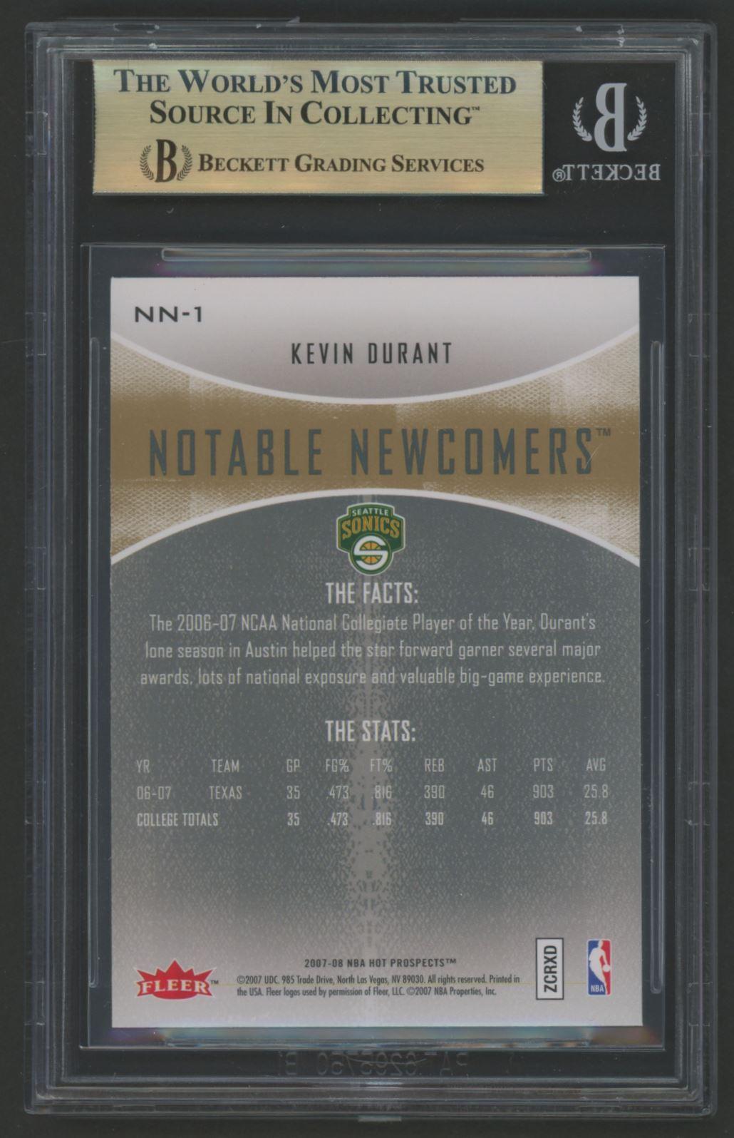 Kevin Durant 2007-08 Fleer Hot Prospects Notable Newcomers #NN-1 (BGS 9.5)