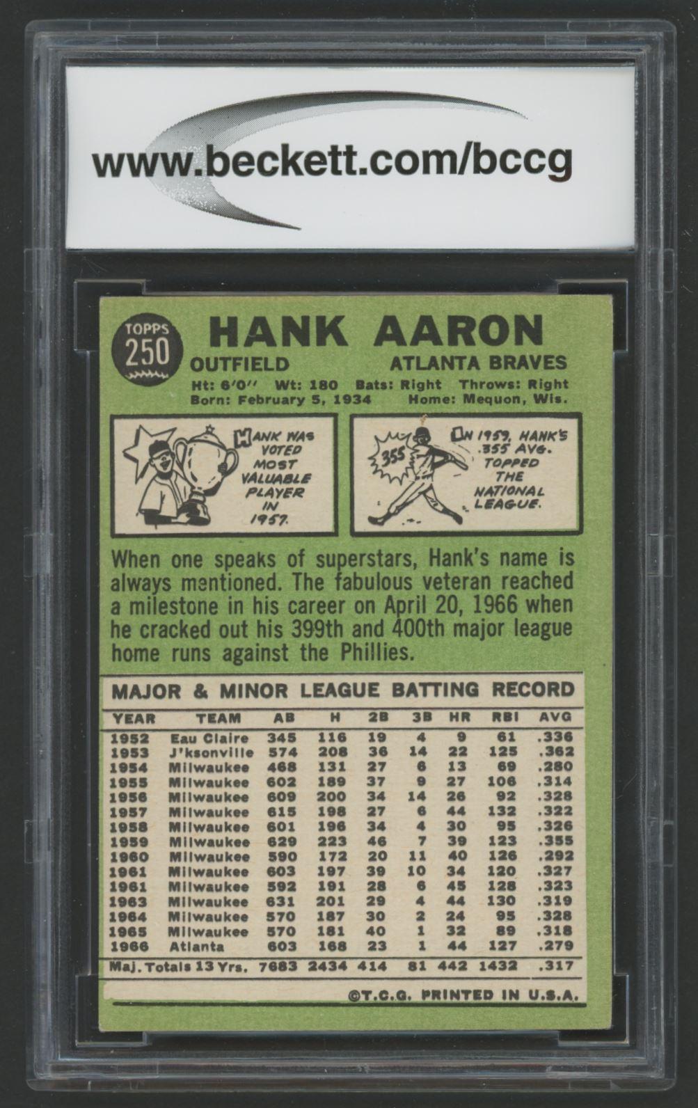 Hank Aaron 1967 Topps #250 (BCCG 8)