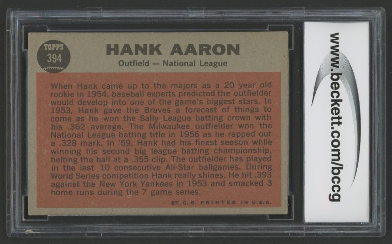Hank Aaron 1962 Topps #394 All Star (BCCG 8)