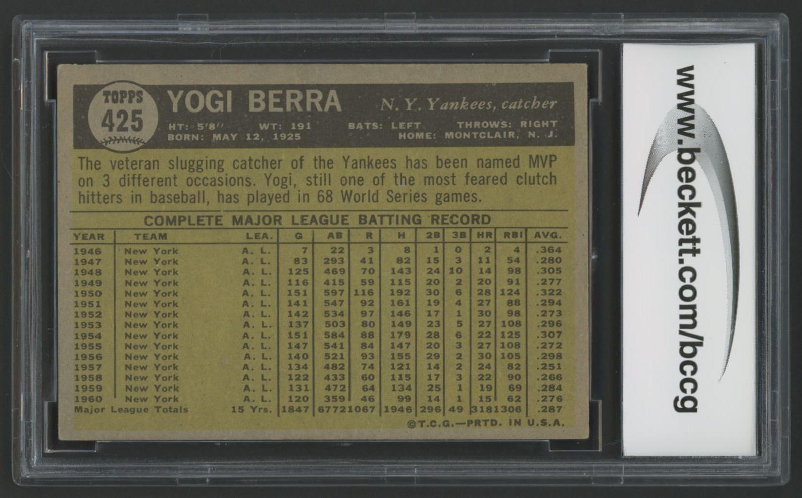 Yogi Berra 1961 Topps #425 (BCCG 8)