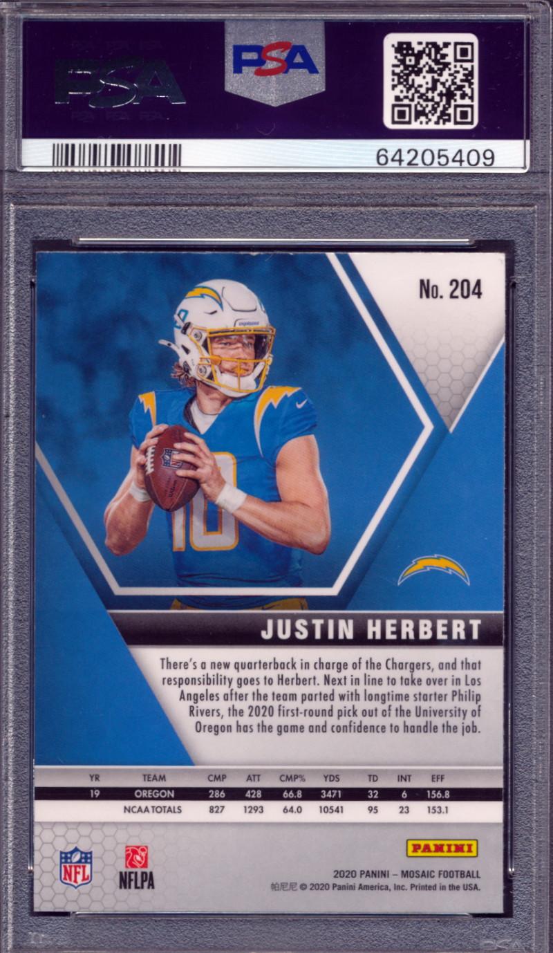 Justin Herbert Signed 2020 Panini Mosaic #204 RC (PSA | Autograph Graded 9)