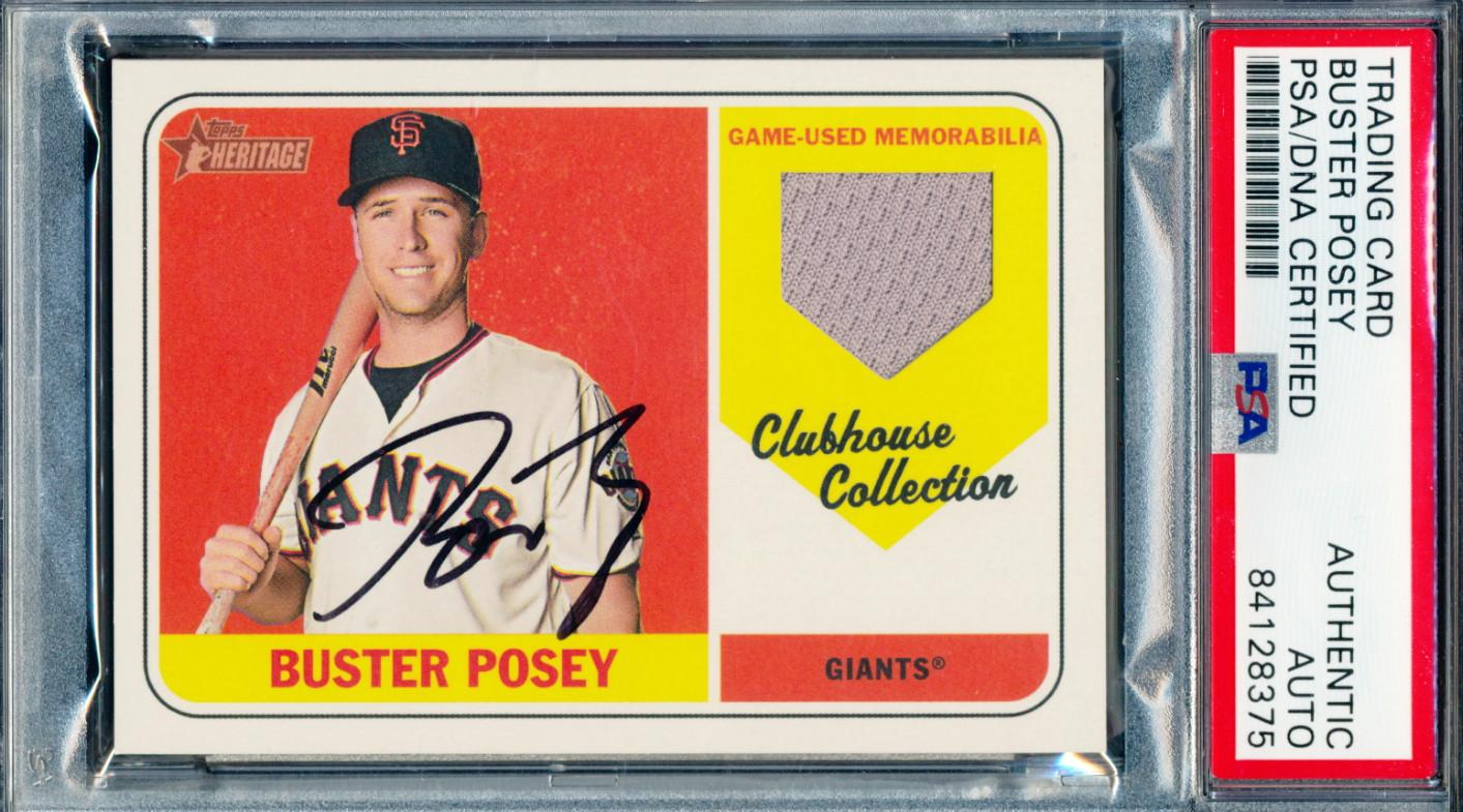 Buster Posey Signed 2018 Topps Heritage Clubhouse Collection Relics #CCRBP HN (PSA)