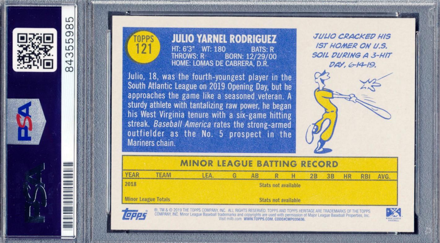Julio Rodriguez Signed 2019 Topps Heritage Minors #121 (PSA | Autograph Graded 10)