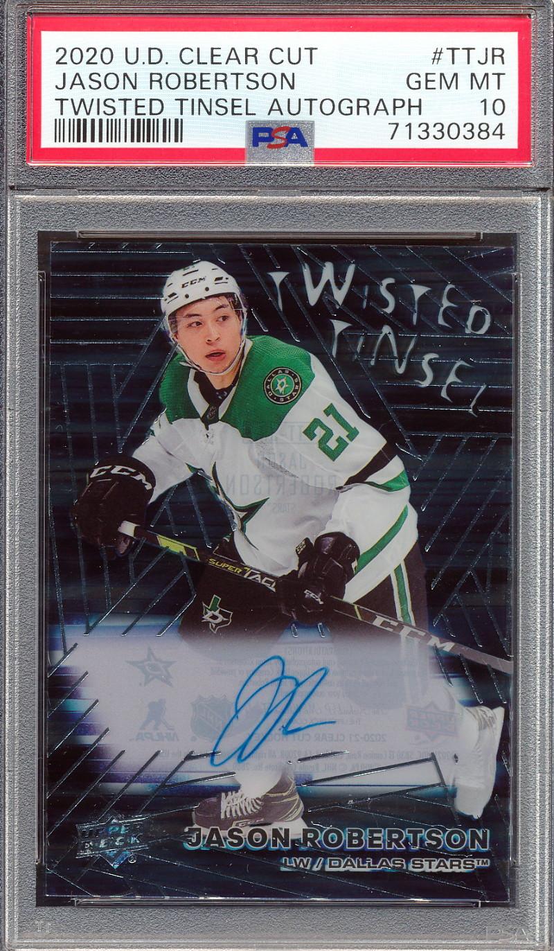 Jason Robertson 2020-21 Upper Deck Clear Cut Twisted Tinsel Rookies C #TTJR (PSA 10)