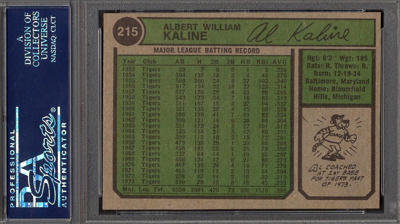 Al Kaline Signed 1974 Topps #215 (PSA)