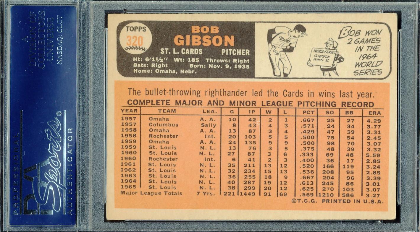 Bob Gibson Signed 1966 Topps #320 (PSA)