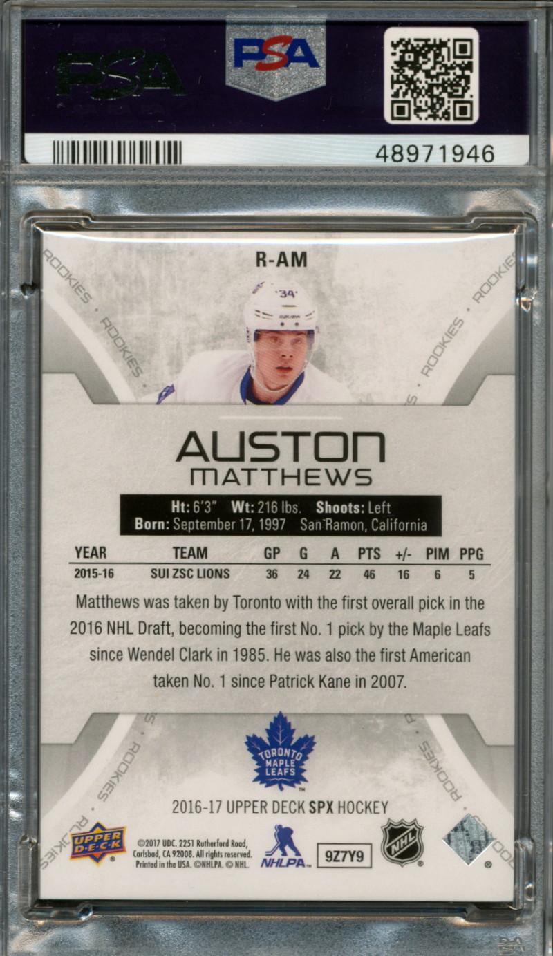 Auston Matthews 2016-17 SPx Rookies #RAM #51/399 (PSA 9)