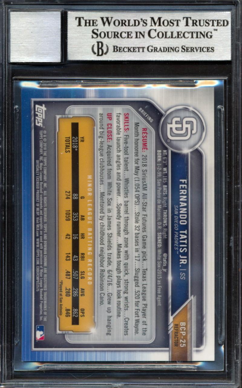 Fernando Tatis Jr. Signed 2019 Bowman Chrome Prospects Refractors #BCP25 #62/499 RC (BGS)