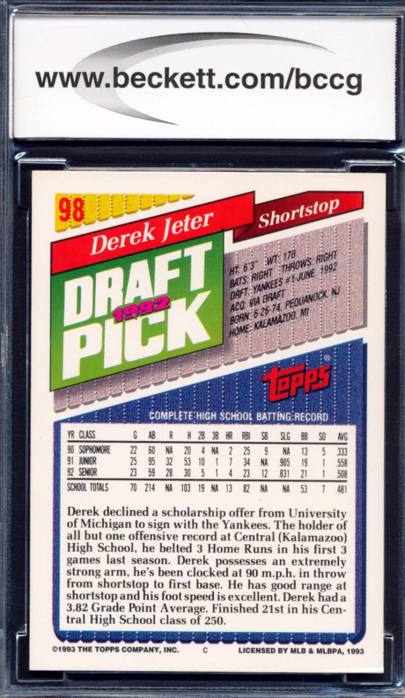 Derek Jeter 1993 Topps Gold #98 RC (BCCG 9)