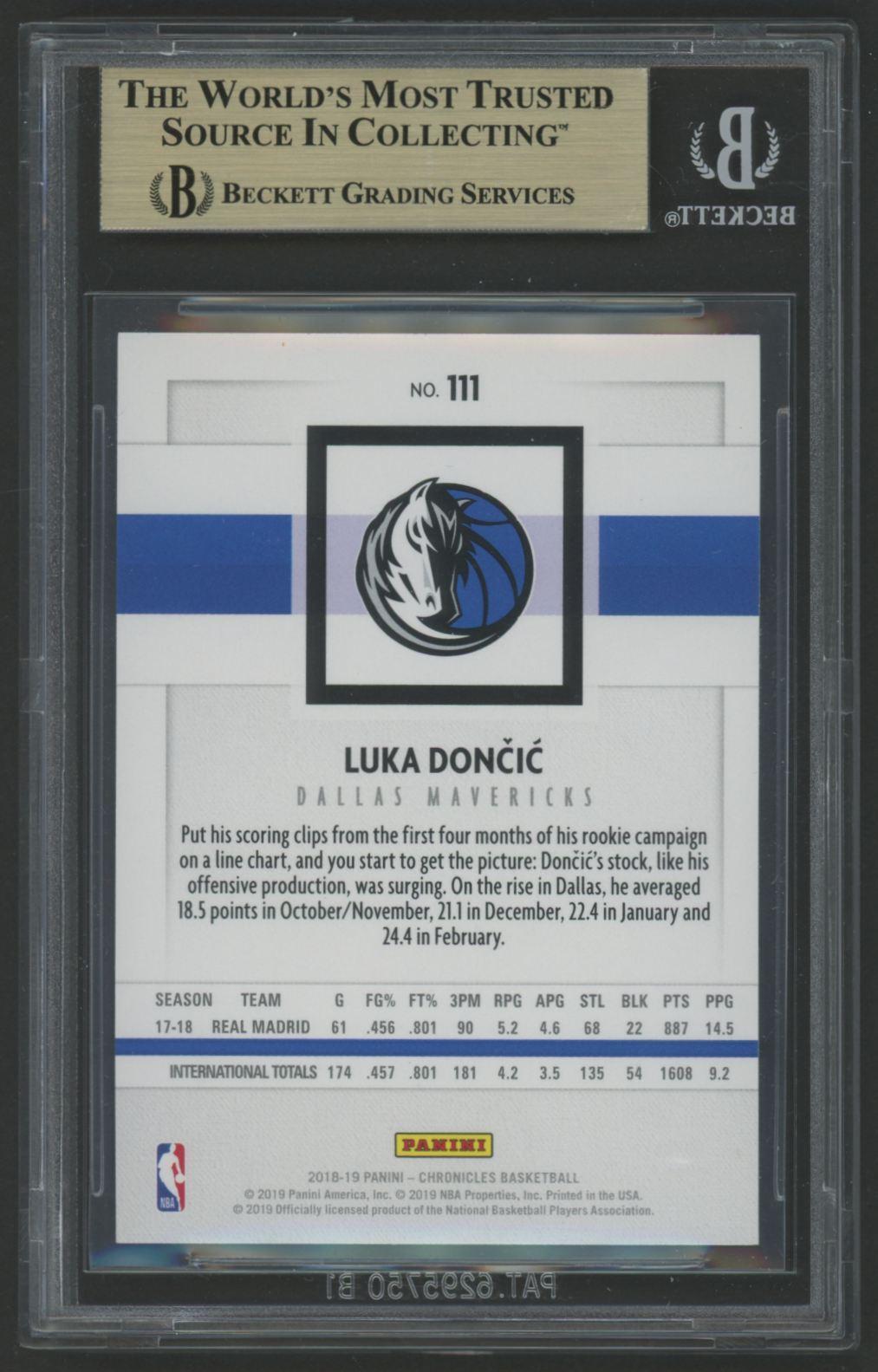 Luka Doncic 2018-19 Chronicles Panini Pink #111 (BGS 9.5)