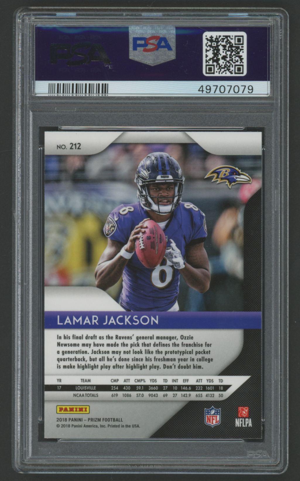 Lamar Jackson 2018 Panini Prizm #212 RC (PSA 9)