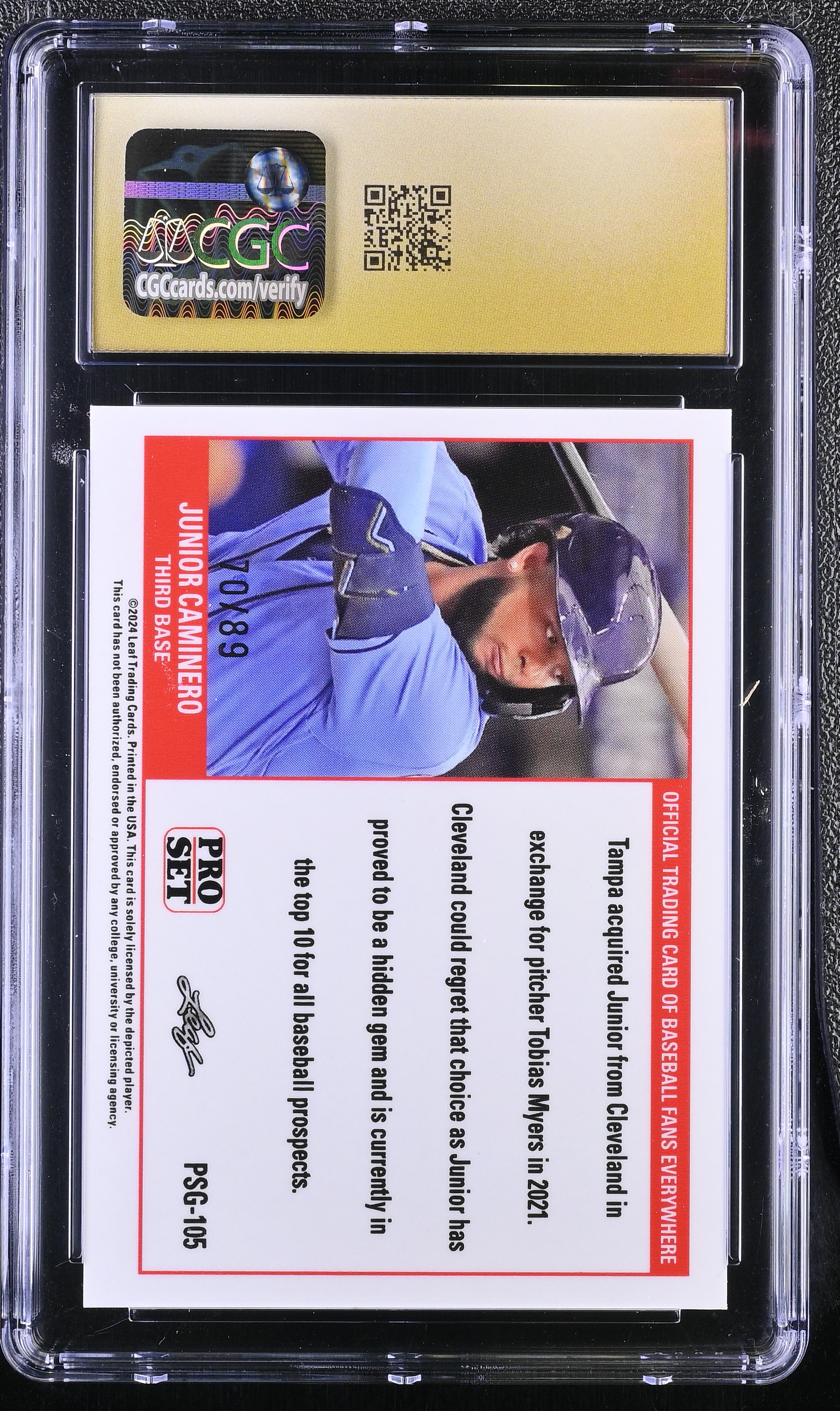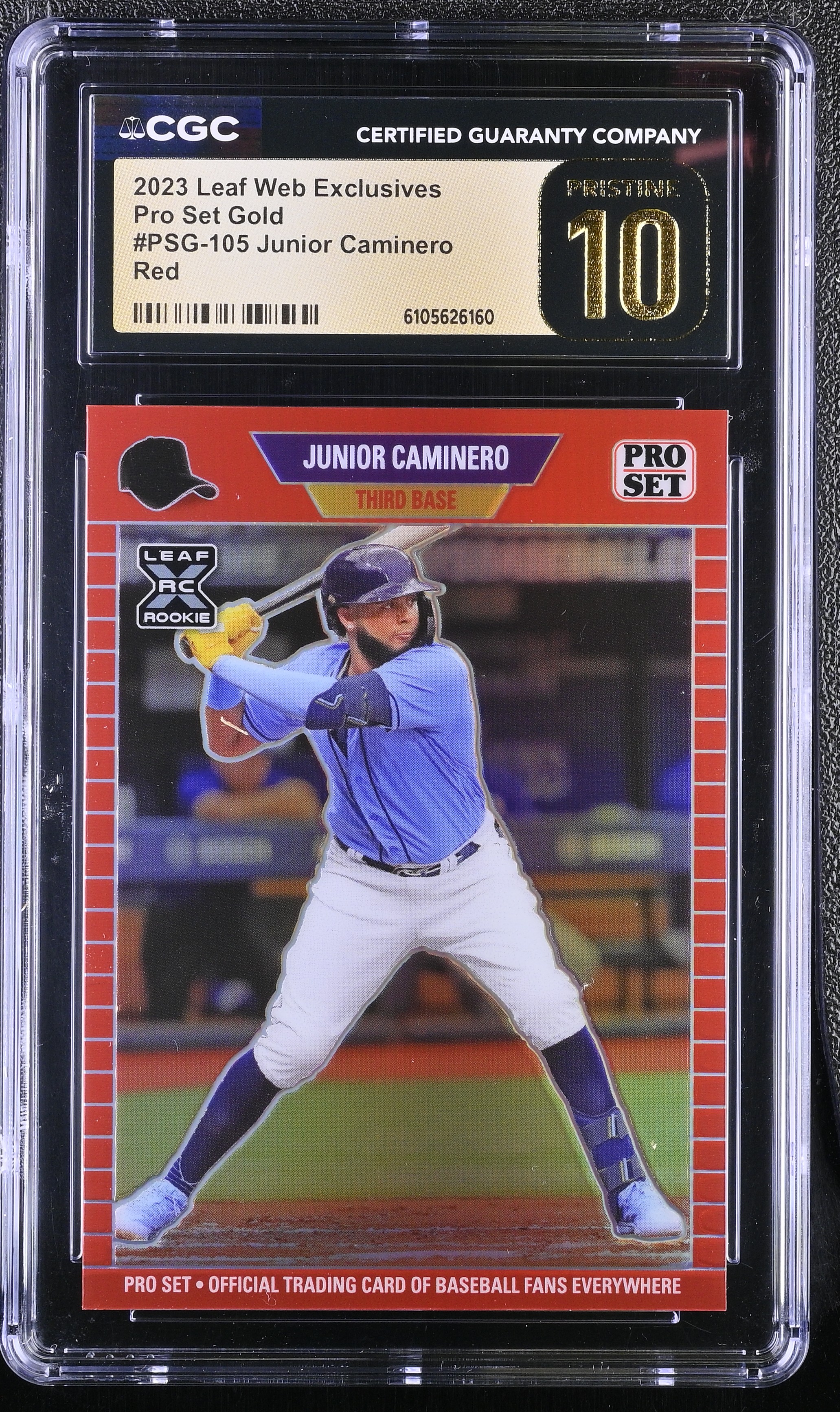 Junior Caminero 2023 Leaf Web Exclusives Pro Set Red #PSG105 RC #70/99 (CGC 10 | Pristine Black Label)