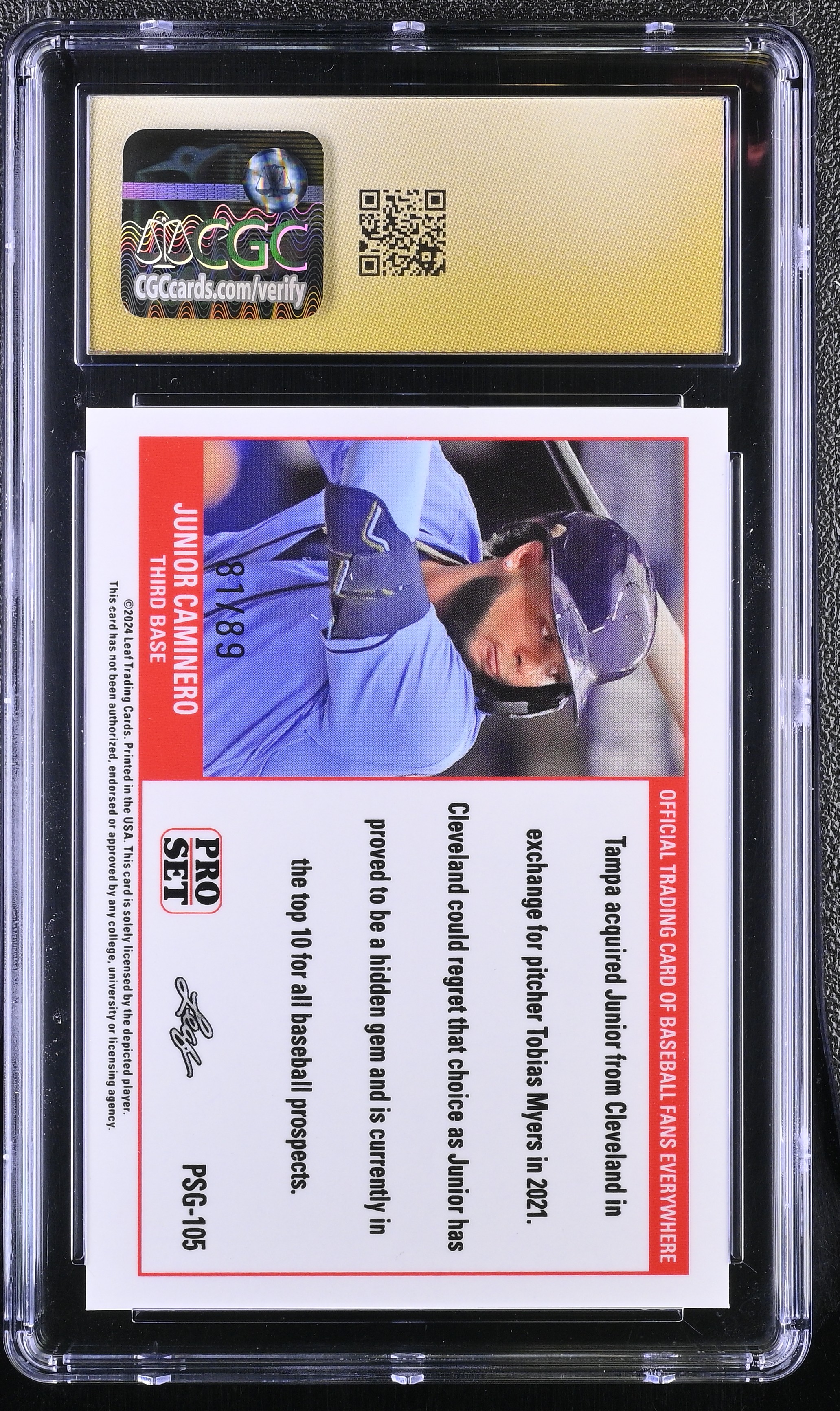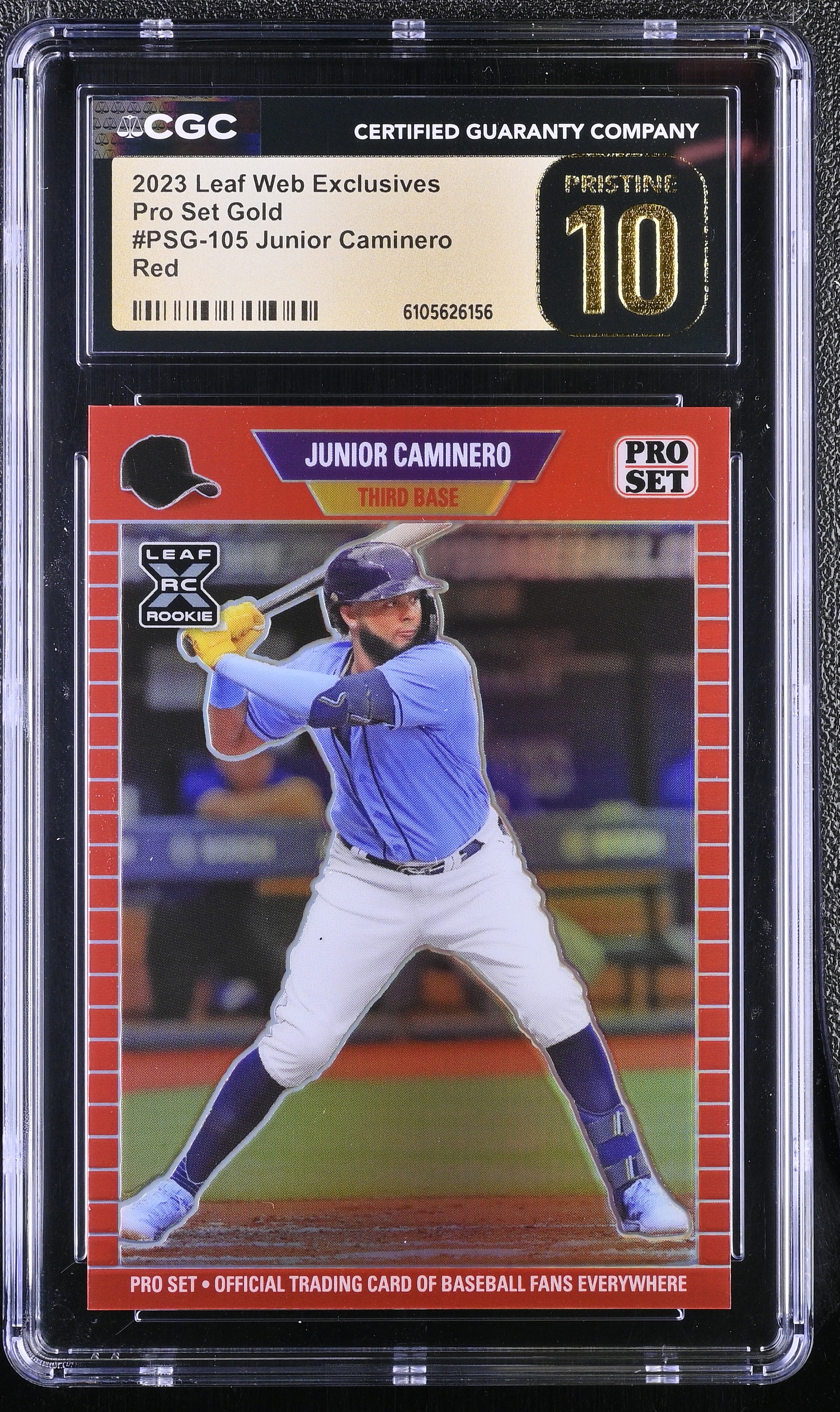 Junior Caminero 2023 Leaf Web Exclusives Pro Set Red #PSG105 RC #81/89 (CGC 10 | Pristine Black Label)
