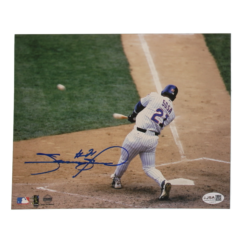 Photo measures 8" x 10" in size and has been hand-signed by Sammy Sosa (Chicago Cubs).