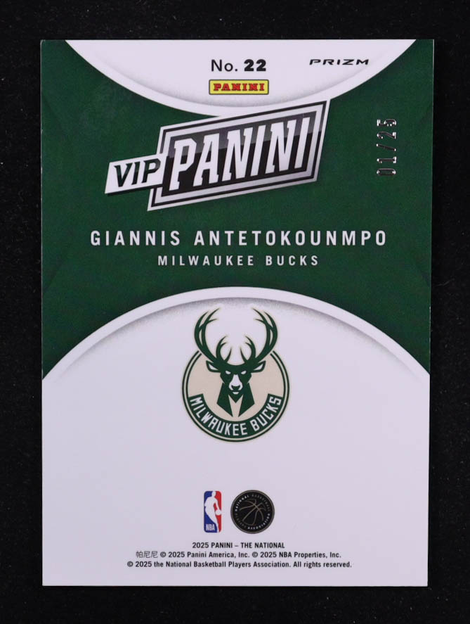 Giannis Antetokounmpo 2025 Panini National Convention VIP Gold Packs Red White Blue #22 #01/25