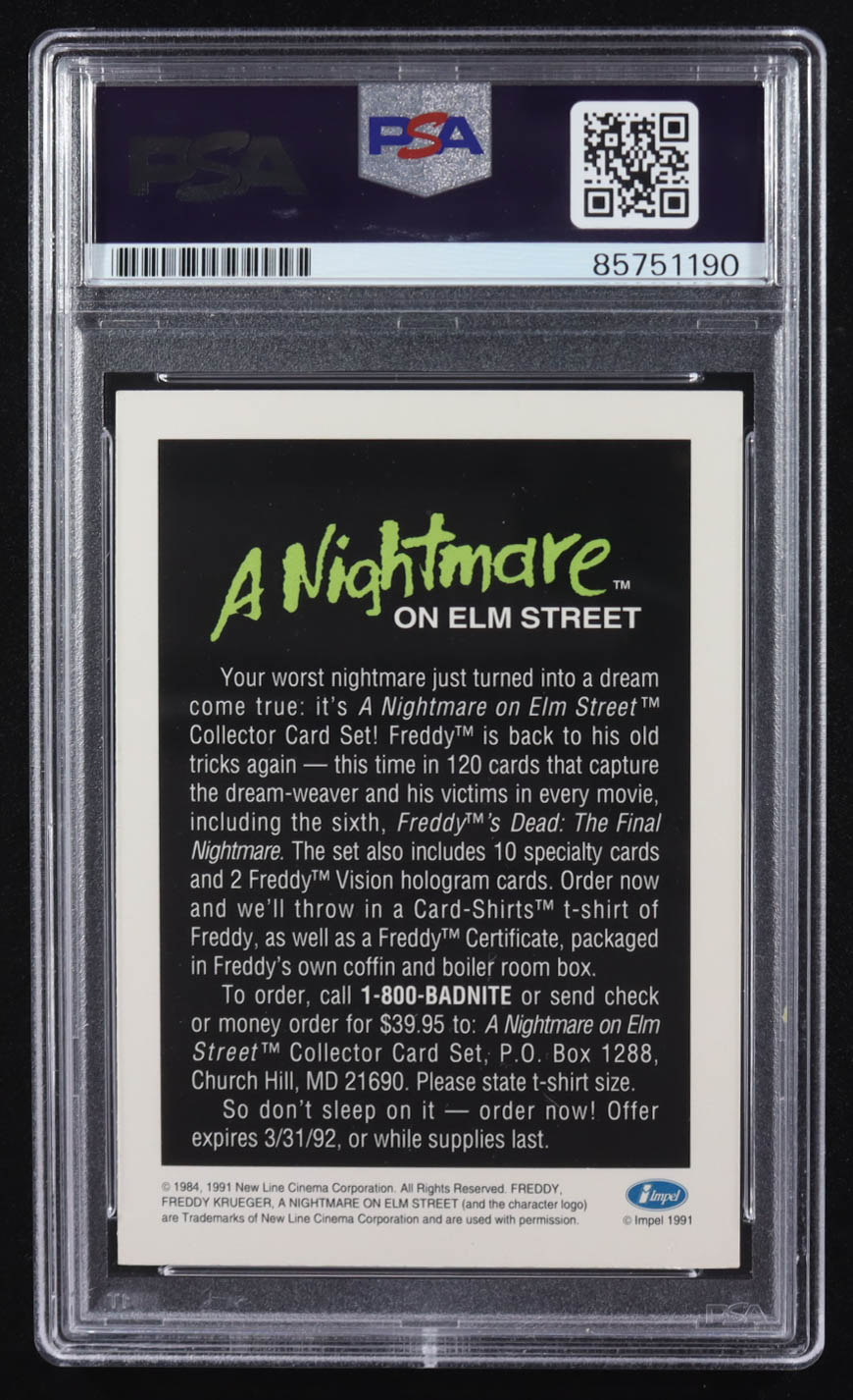 Robert Englund Signed 1991 Impel A Nightmare On Elm Street (PSA)