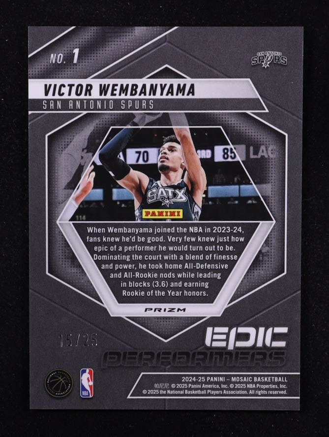 Victor Wembanyama 2024-25 Panini Mosaic Epic Performers Mosaic Orange Fluorescent #1 #15/25