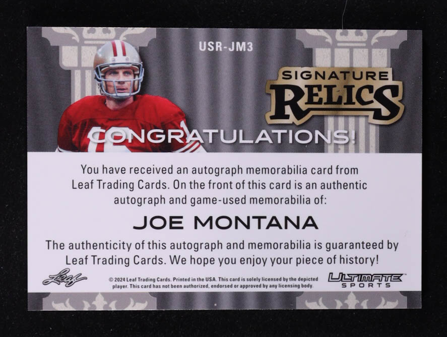 Joe Montana 2024 Leaf Ultimate Signature Relics Bronze #JM3 #06/25