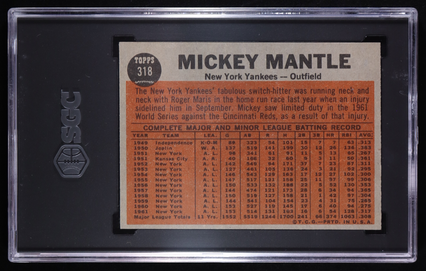Mickey Mantle 1962 Topps #318 IA (SGC 5)