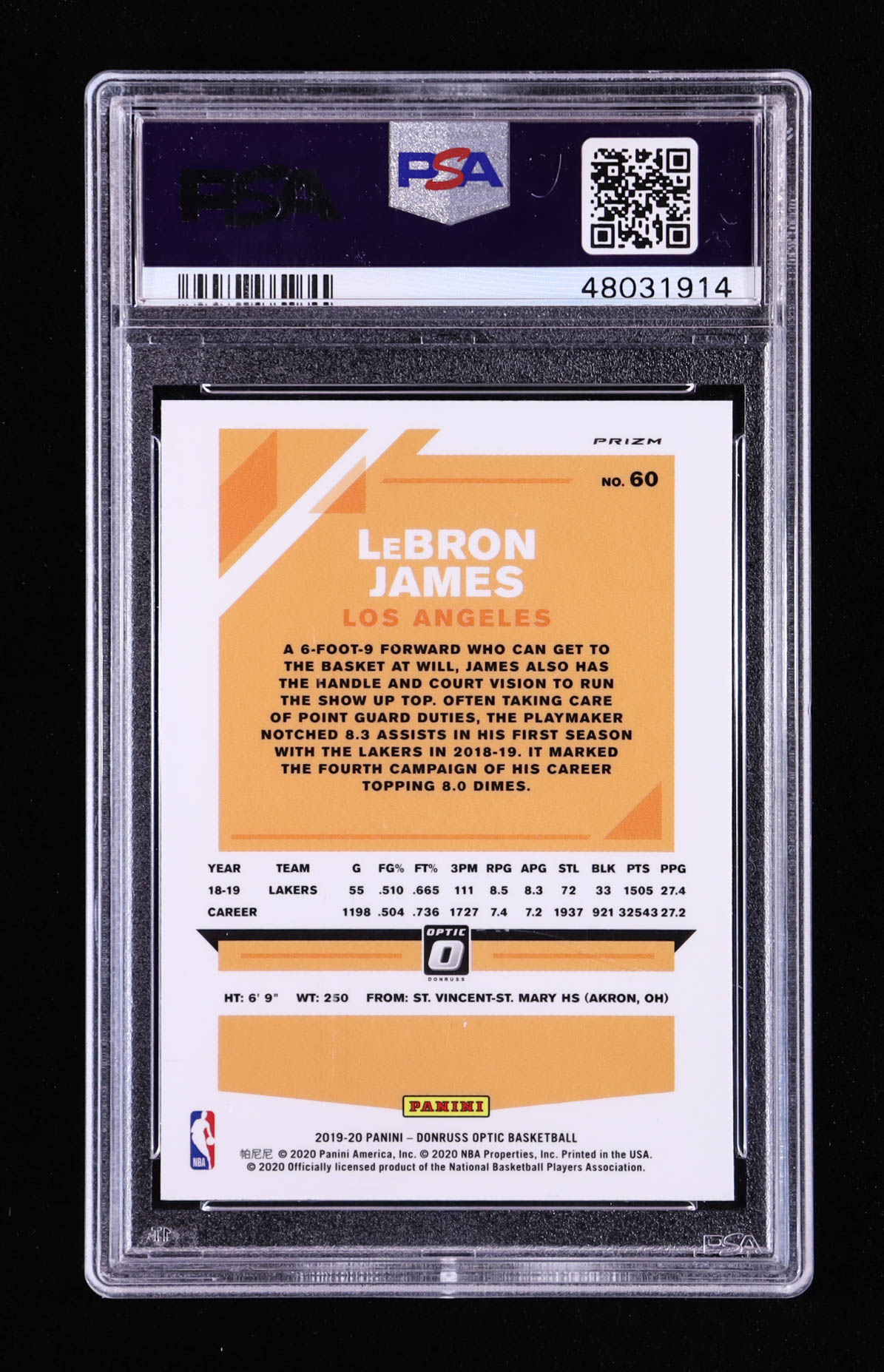 LeBron James 2019-20 Donruss Optic Blue Velocity #60 (PSA 10)