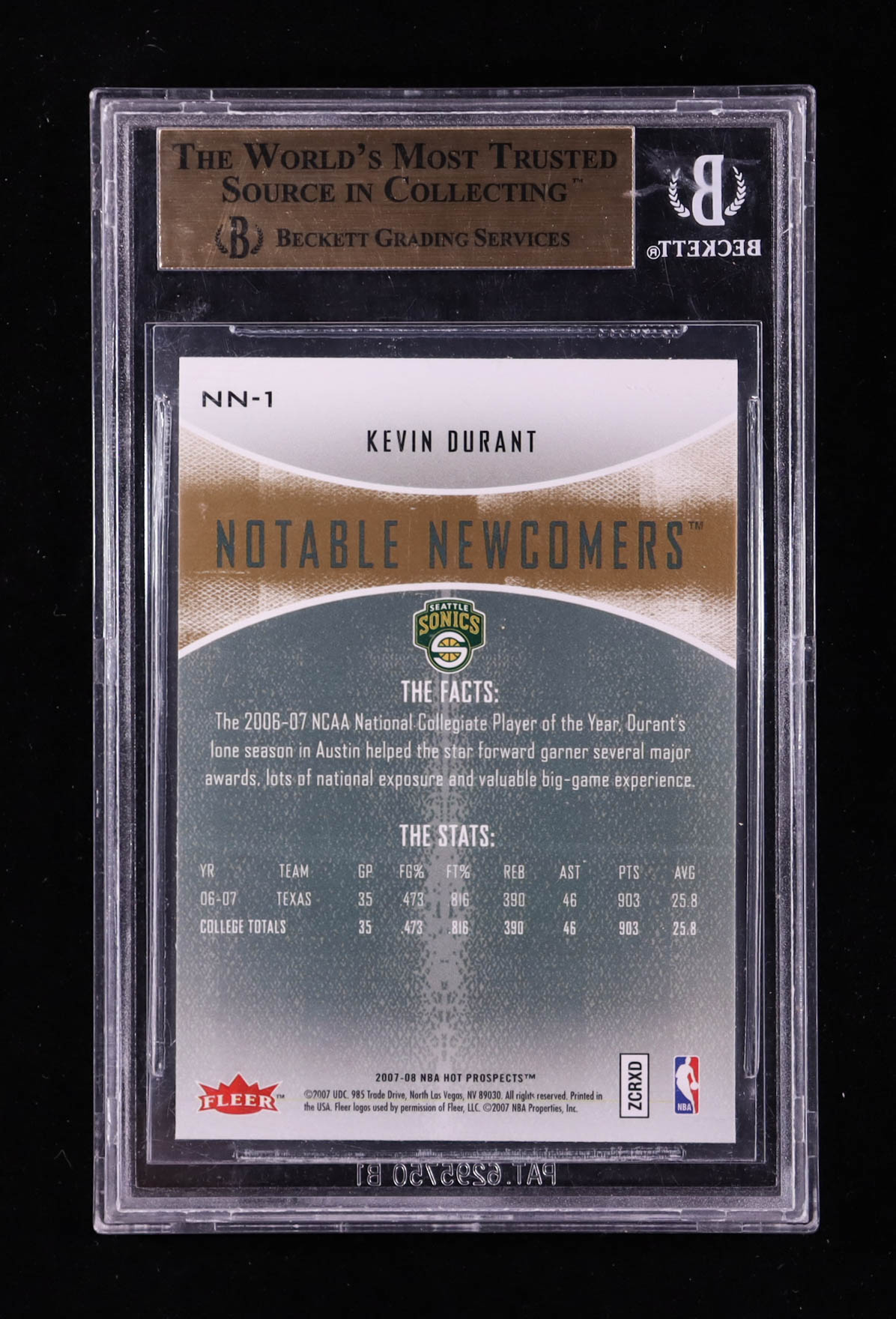 Kevin Durant 2007-08 Fleer Hot Prospects Notable Newcomers #NN-1 RC (BGS 9.5)