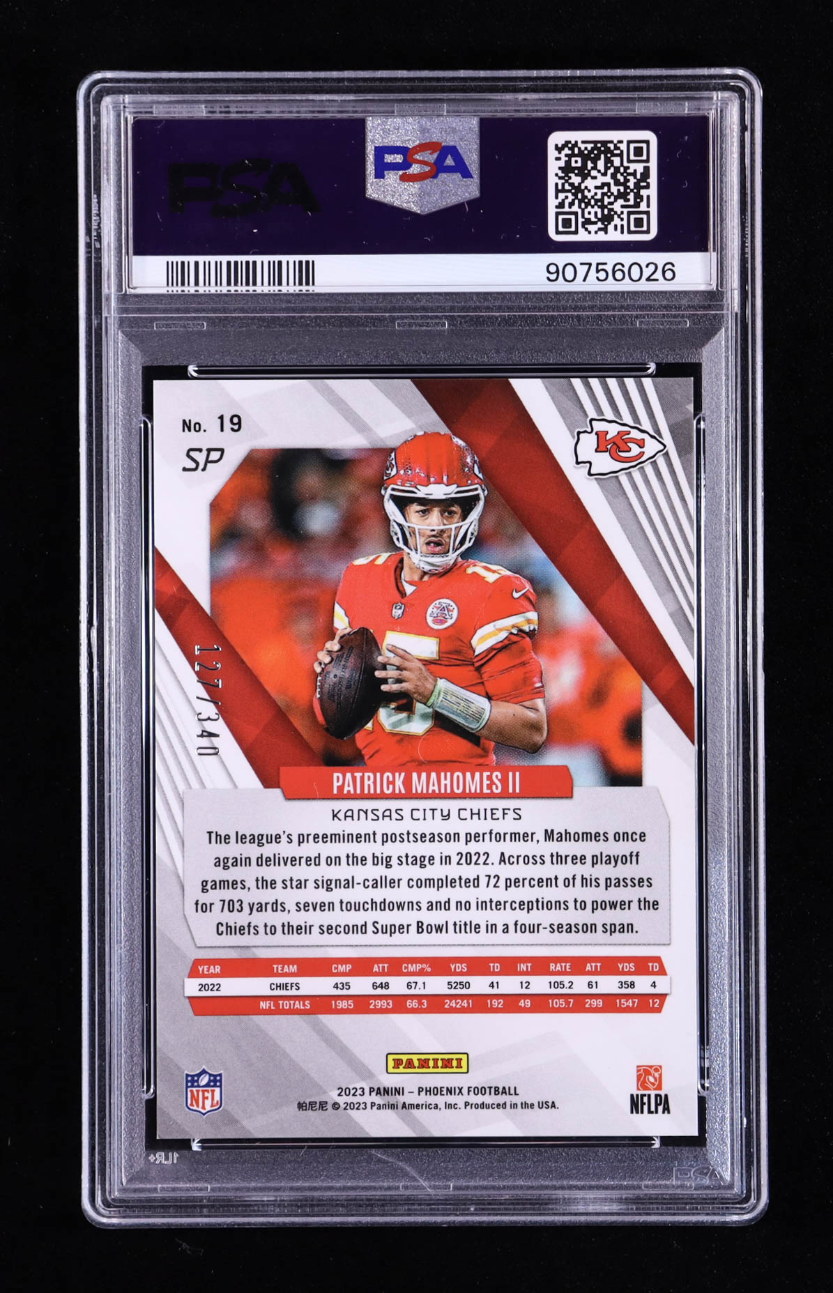 Patrick Mahomes II 2023 Panini Phoenix SP Fire Burst #19 #127/340 (PSA 10)