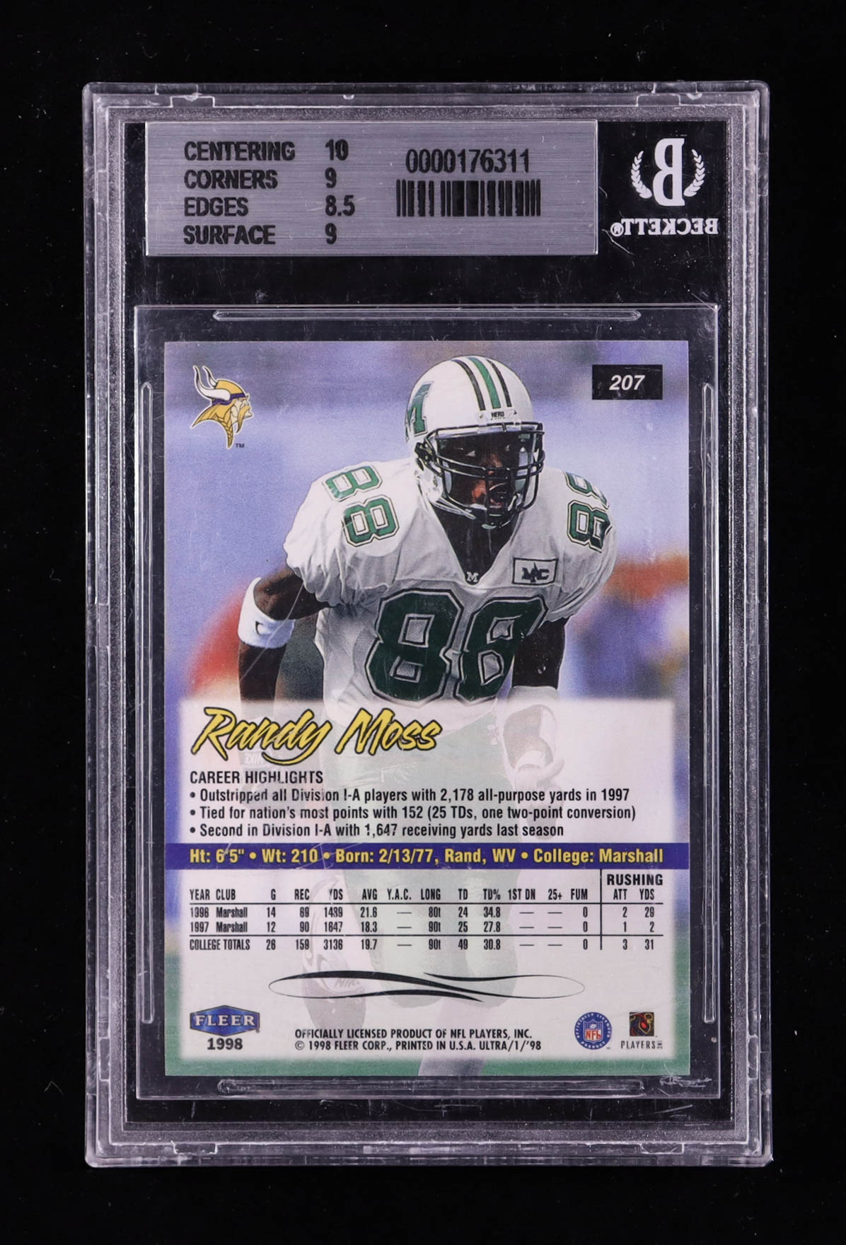 Randy Moss 1998 Ultra #207 RC (BGS 9)