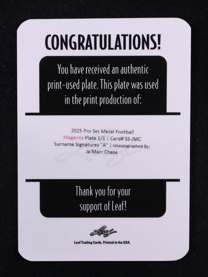 Ja'Marr Chase 2025 Leaf Pro Set Autographs Surname Signatures "A" Printing Plates Magenta #NNO #1/1