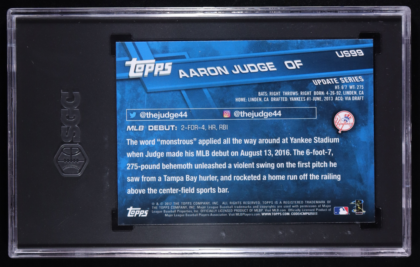Aaron Judge 2017 Topps Update #US99A RD RC (SGC 9)