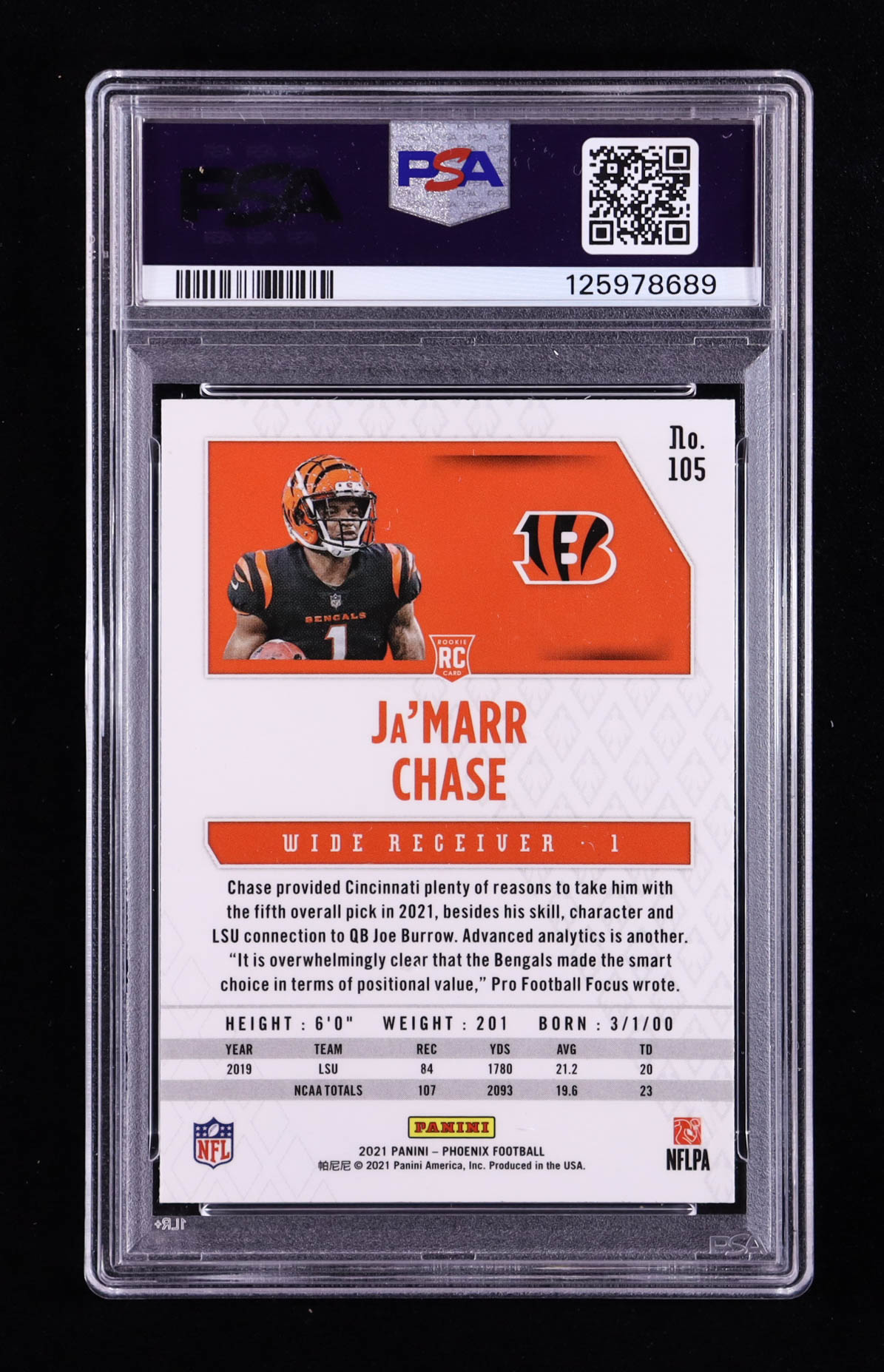 Ja'Marr Chase 2021 Panini Phoenix Fire Burst #105 RC (PSA 10)