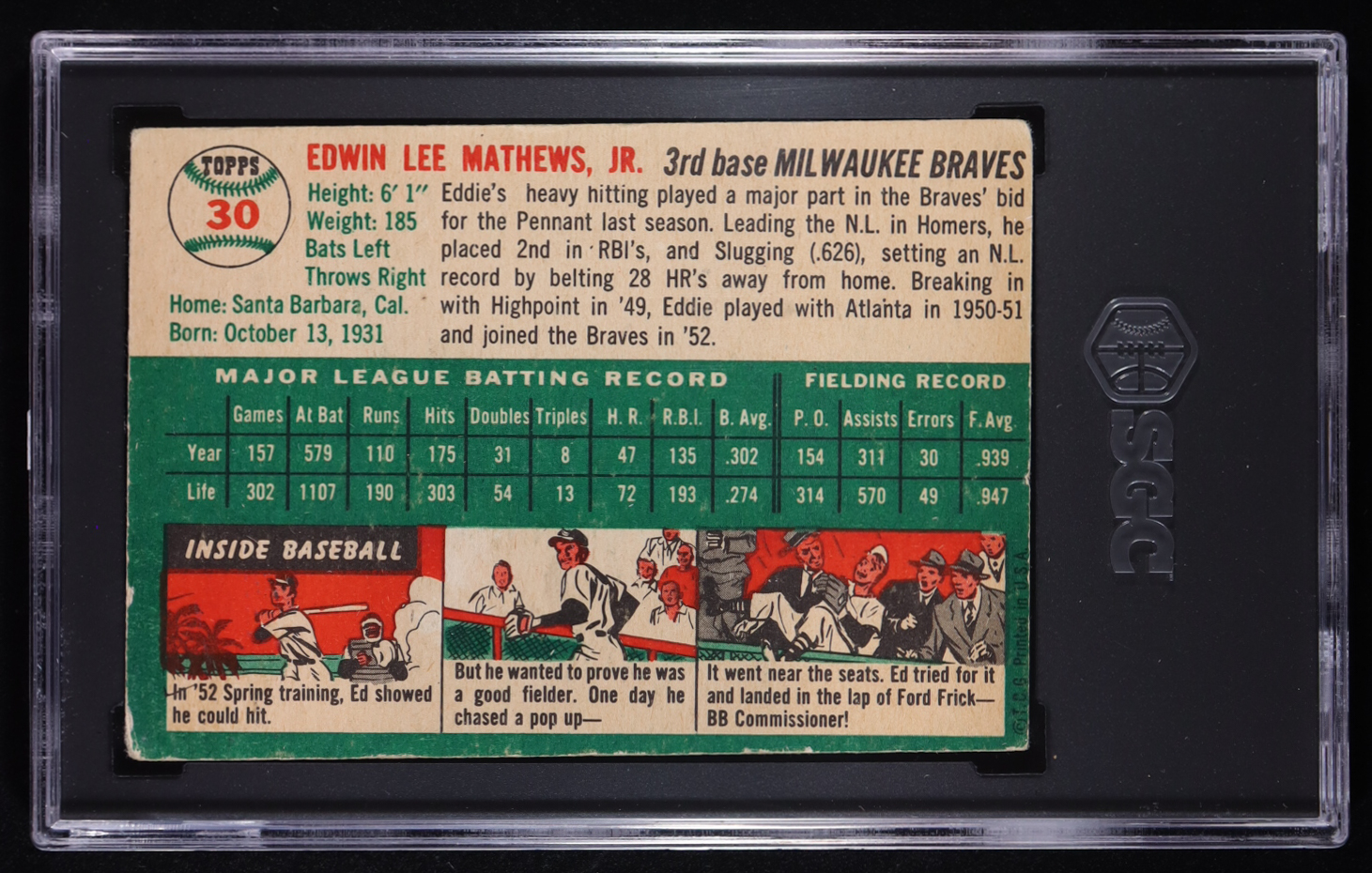 Eddie Mathews 1954 Topps #30 (SGC 4)