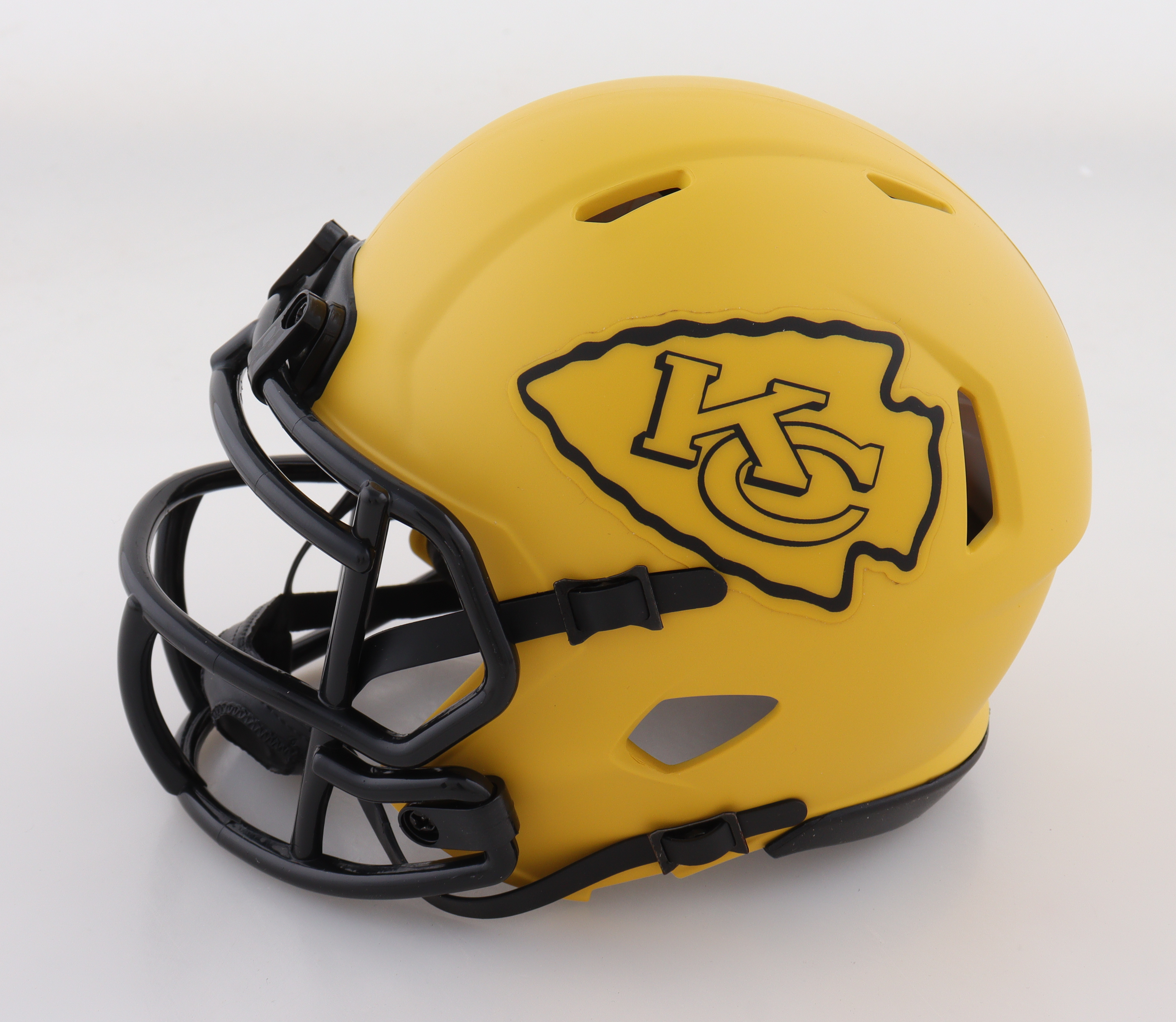 Riddell Kansas City Chiefs Rave Alternate speed mini helmet. Hand-signed by Trent McDuffie.