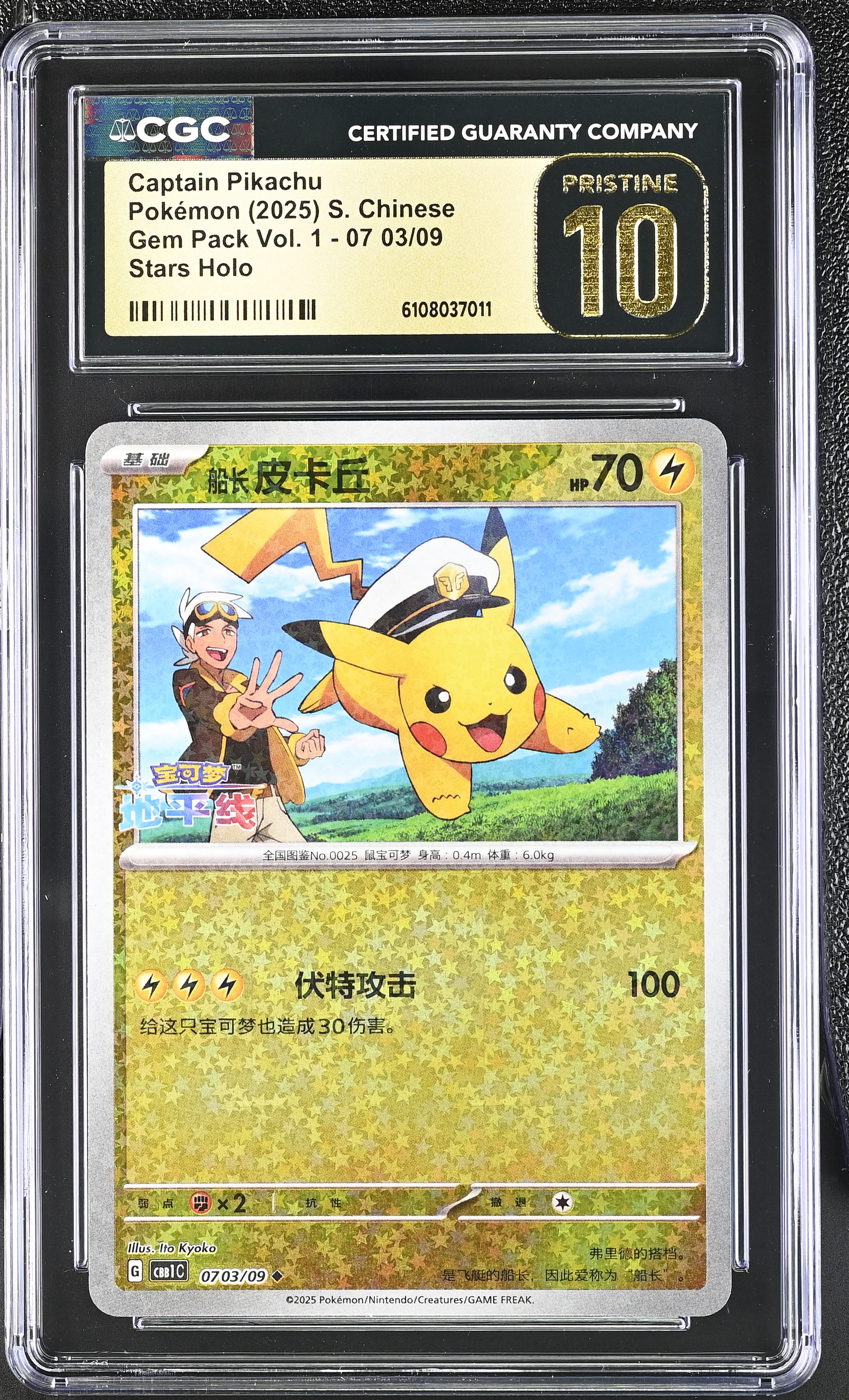 Captain Pikachu 2025 Pokemon TCG Scarlet & Violet Gem Pack Vol.1 Simplified Chinese #0703 Star Holo (CGC 10 | Black Label)