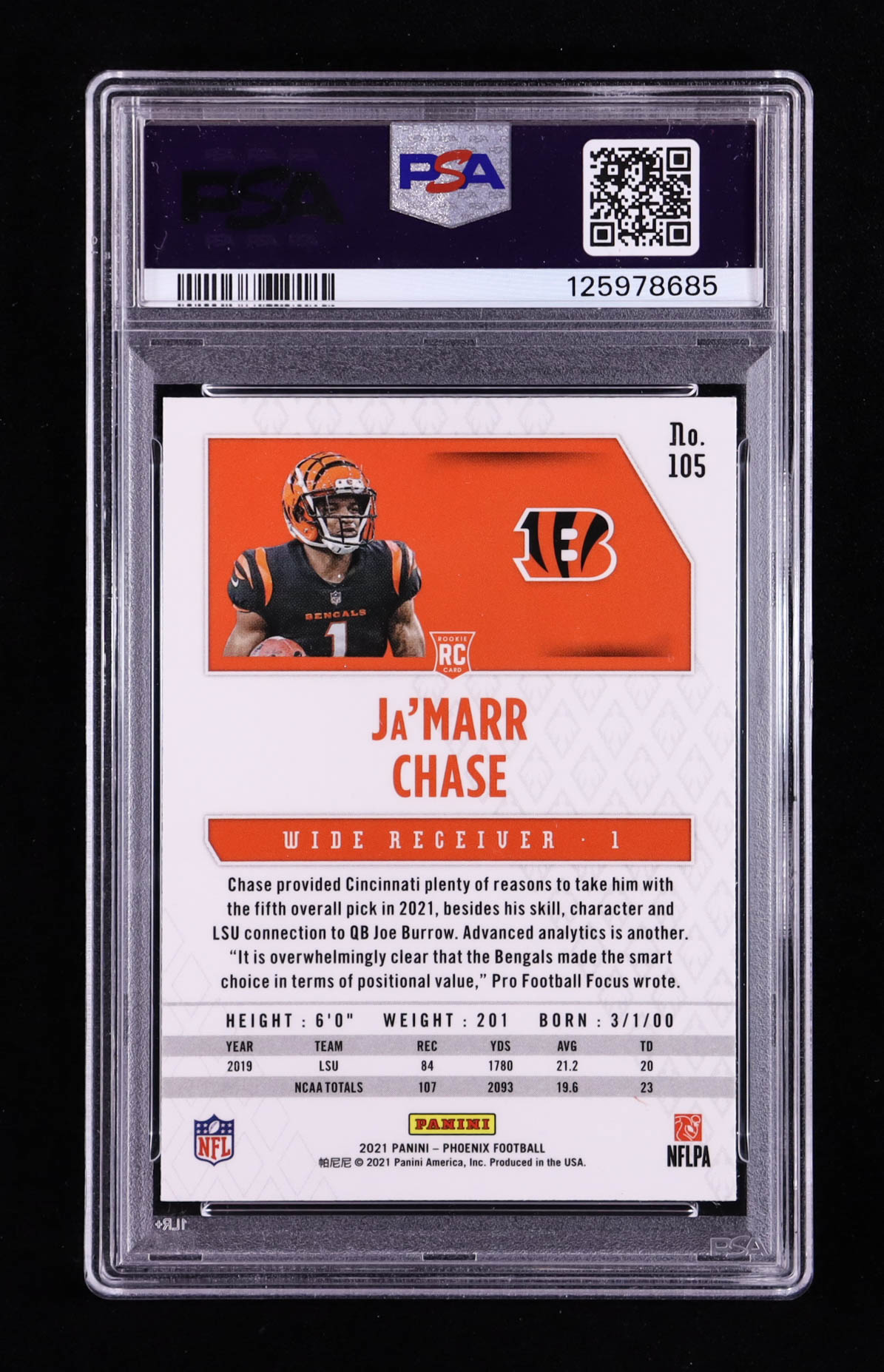 Ja'Marr Chase 2021 Panini Phoenix Fire Burst #105 RC (PSA 10)