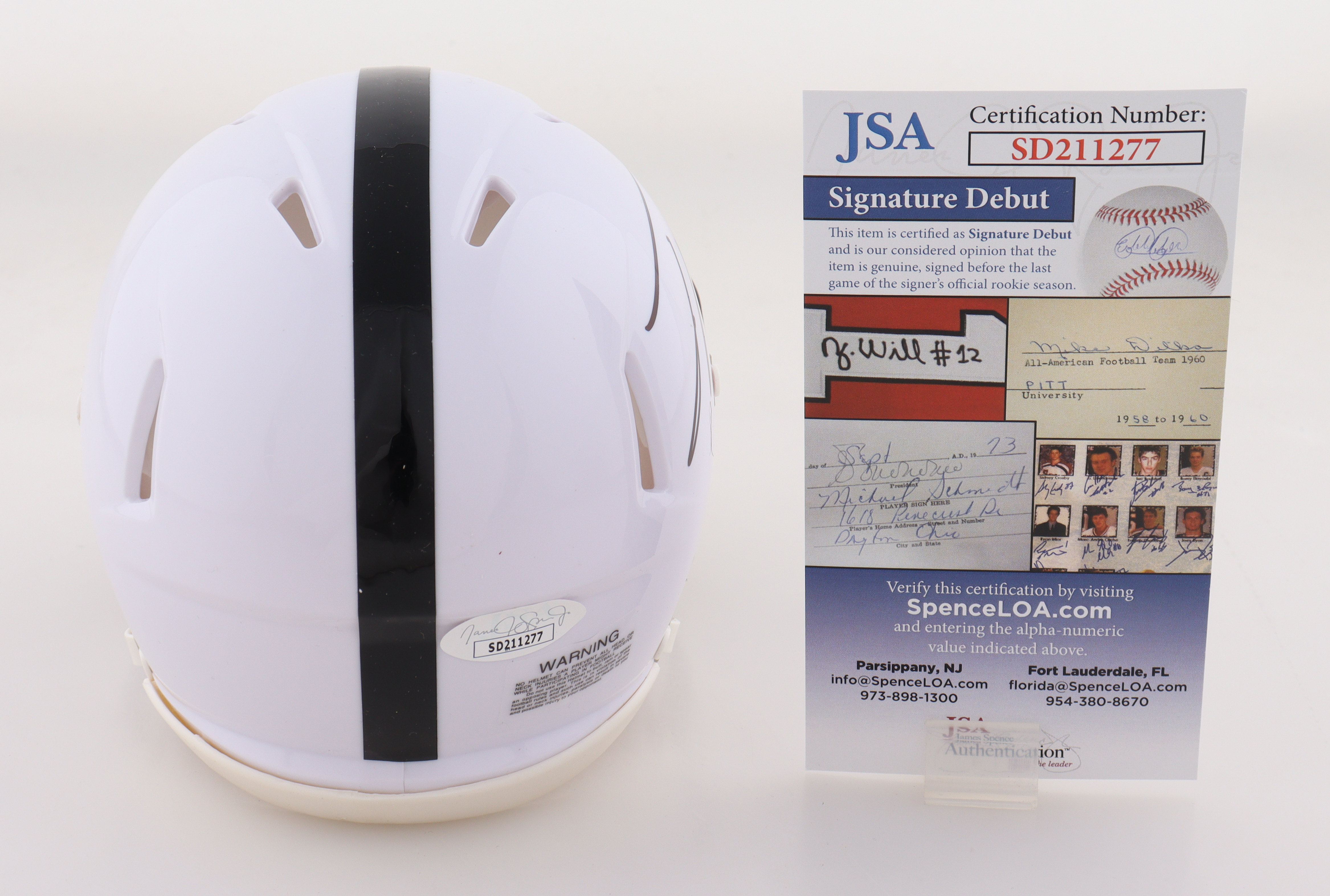 The autograph(s) includes an official James Spence Authentication (JSA) "Signature Debut" hologram and COA. "Signature Debut" is the autographed memorabilia equivalent to a rookie card. The JSA definition of a "Signature Debut" is as follows: "Any item that is autographed and received by JSA prior to the last game of the signer's official rookie season.