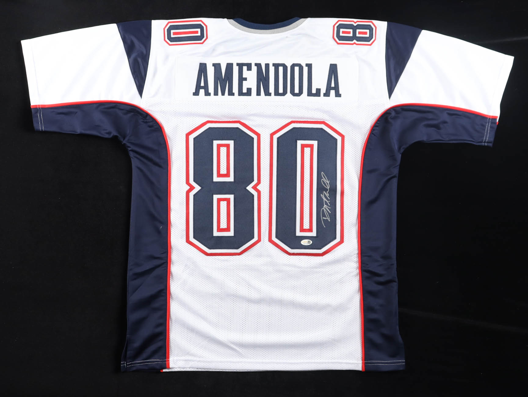 Custom jersey with everything sewn on, size XL. Hand-signed by Danny Amendola.