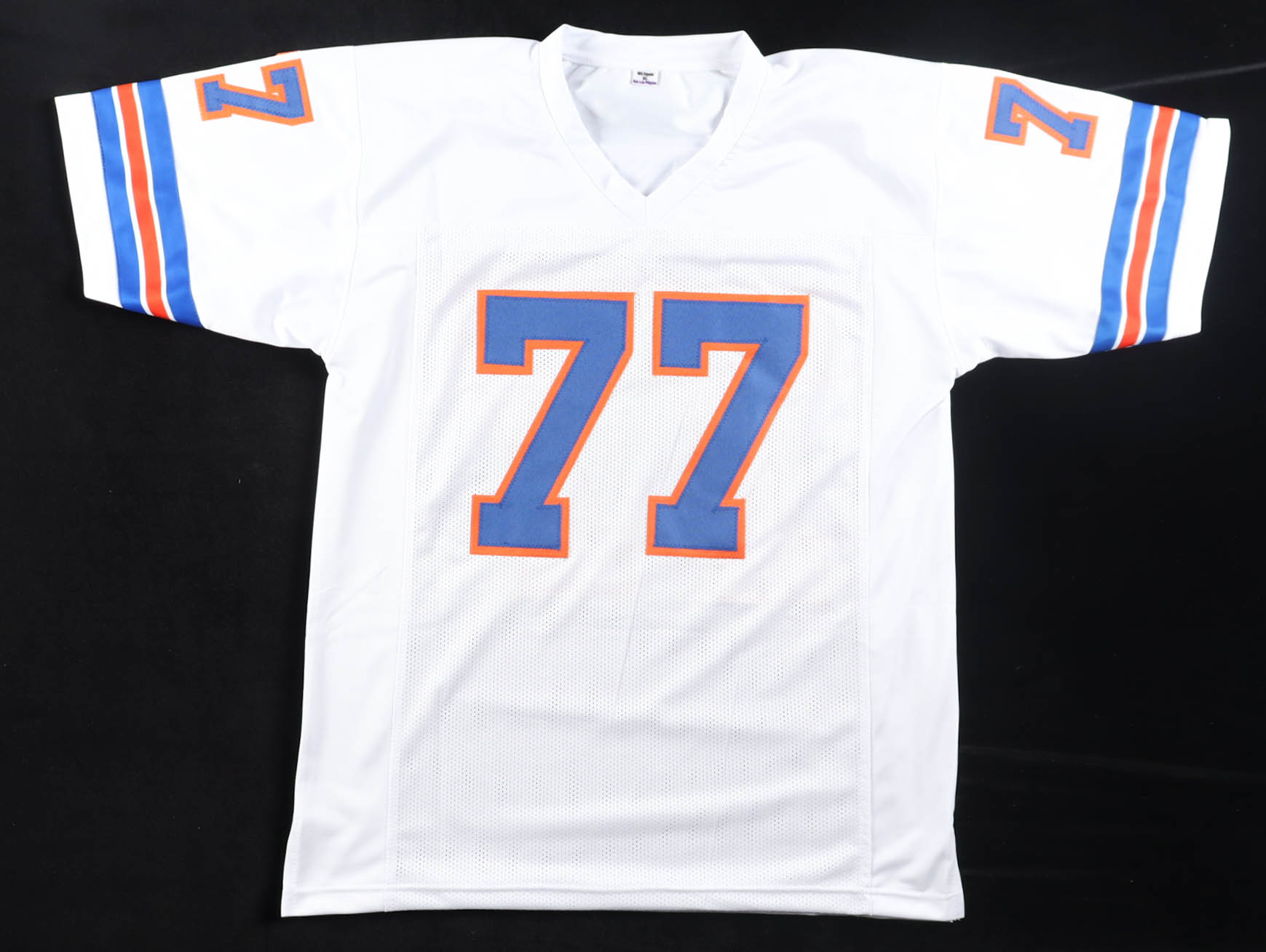 Custom jersey with everything sewn on, size XL. Hand-signed and inscribed by Karl Mecklenburg.