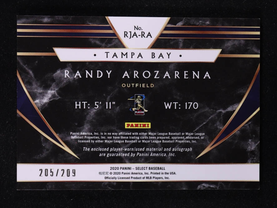 Randy Arozarena 2020 Select Rookie Jersey Autographs #1 #205/209 RC