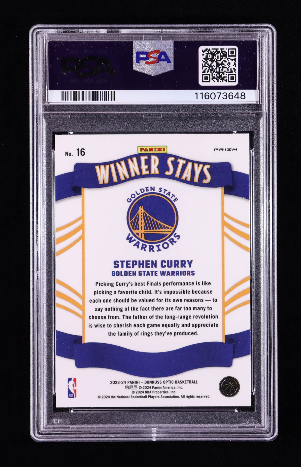 Stephen Curry 2023-24 Donruss Optic Winner Stays Purple #16 (PSA 10)
