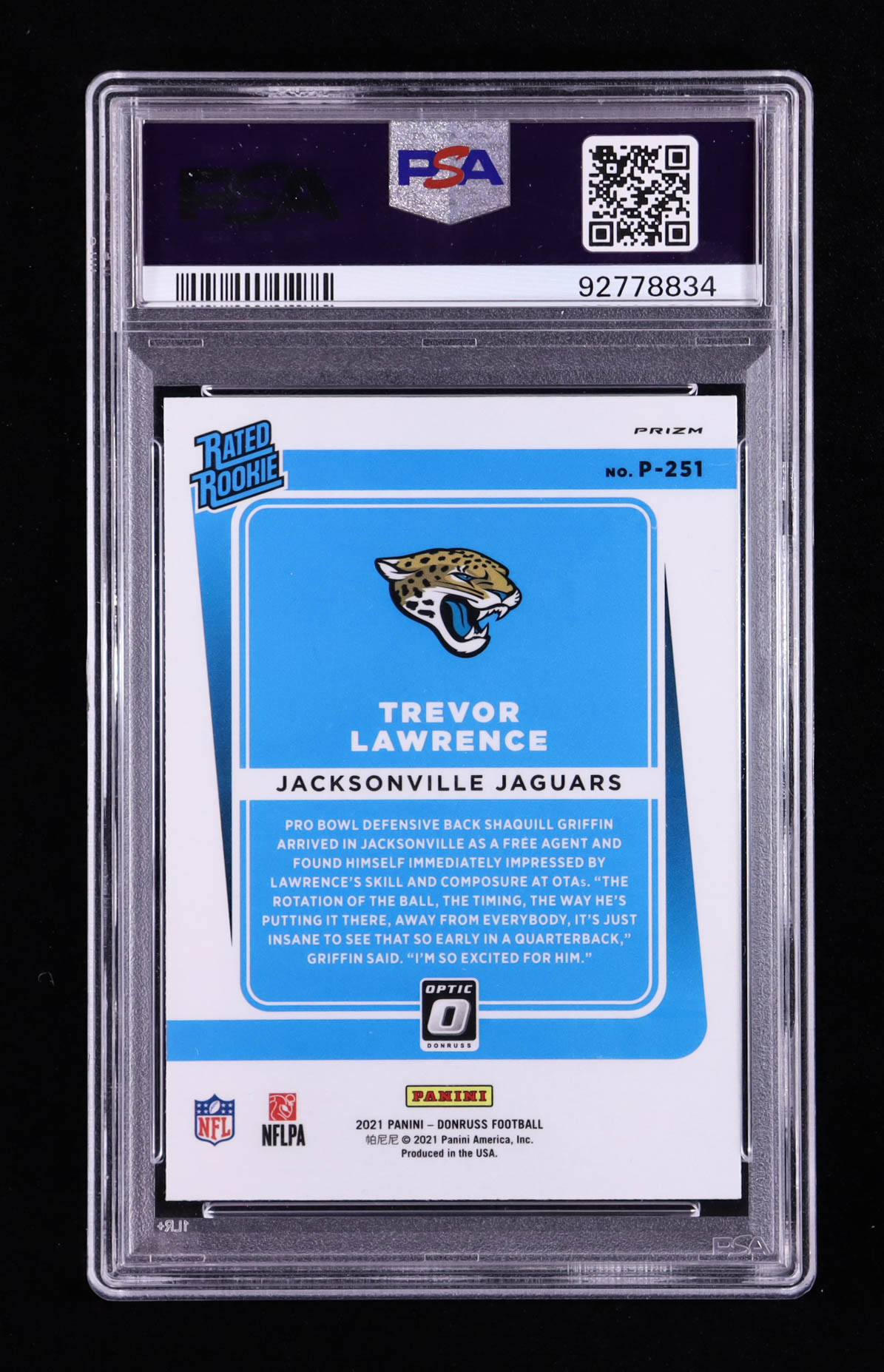 Trevor Lawrence 2021 Donruss Optic Rated Rookie Preview Pink #251 RC (PSA 10)