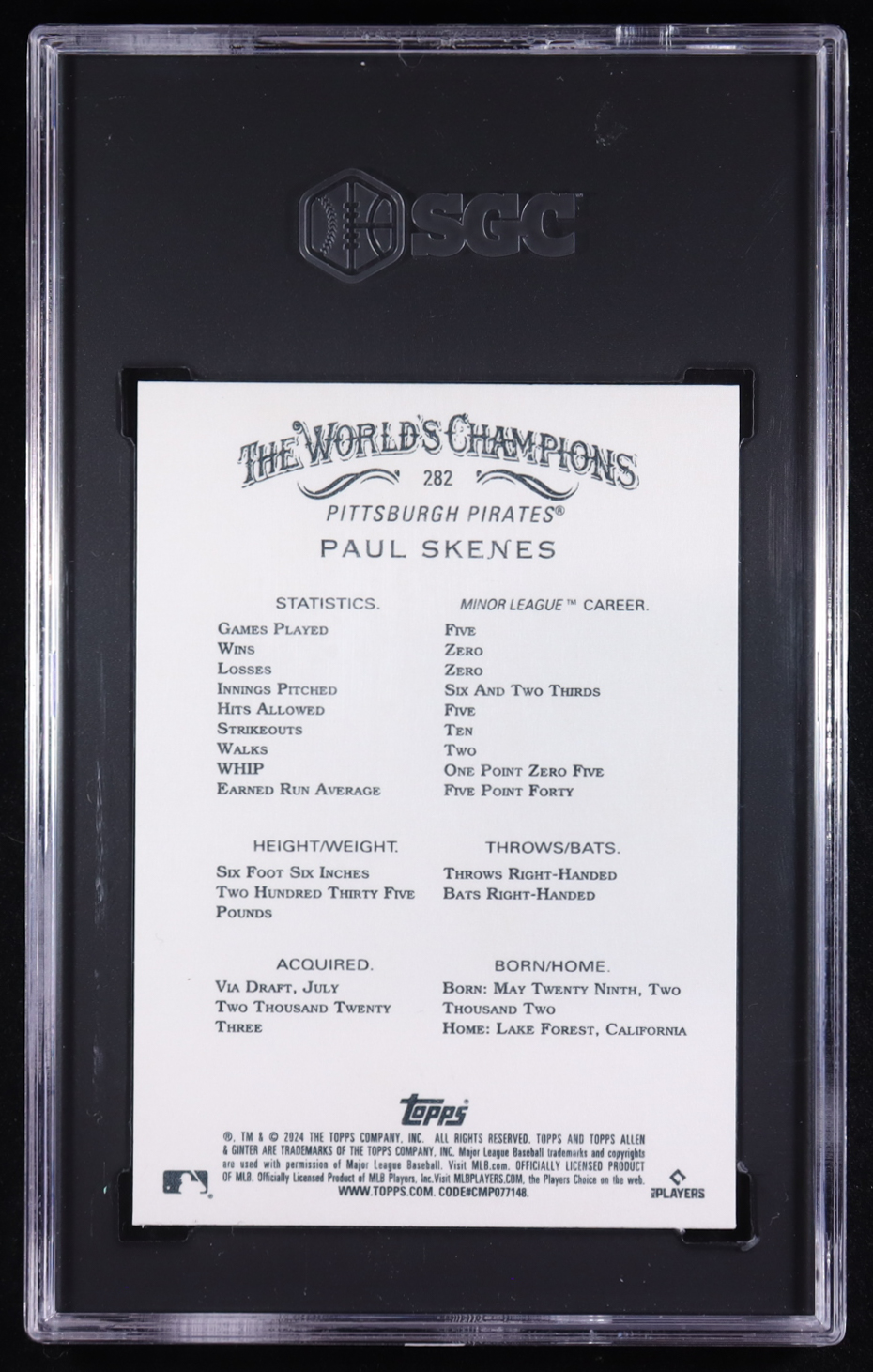Paul Skenes 2024 Topps Allen and Ginter #282 RC (SGC 10)