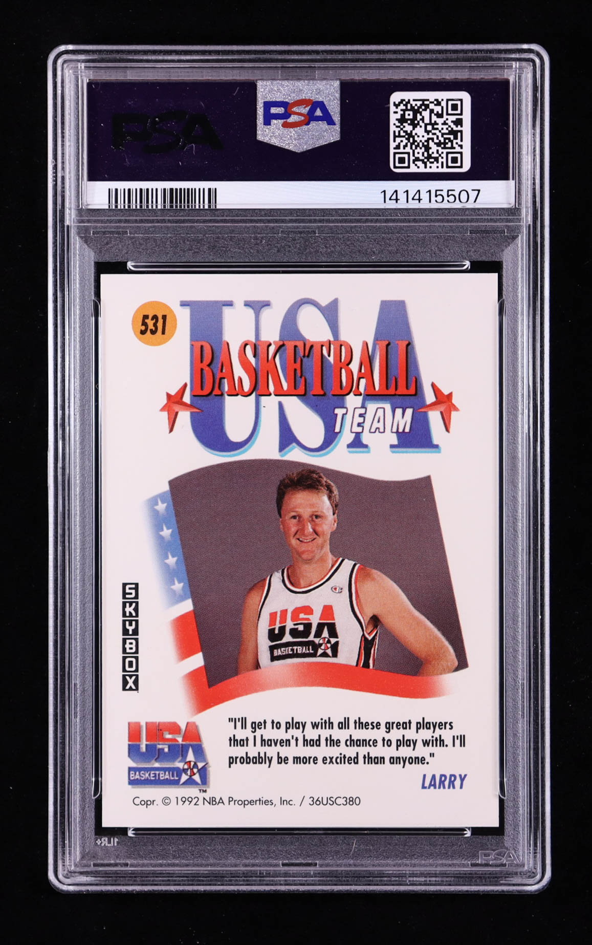Larry Bird 1991-92 SkyBox #531 USA (PSA 10)