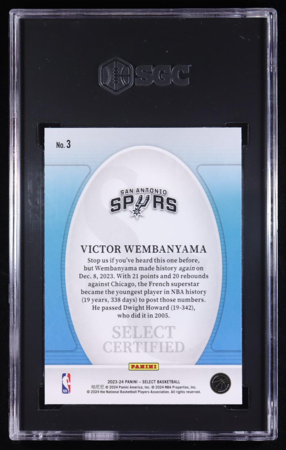Victor Wembanyama 2023-24 Select Select Certified #3 RC (SGC 10)