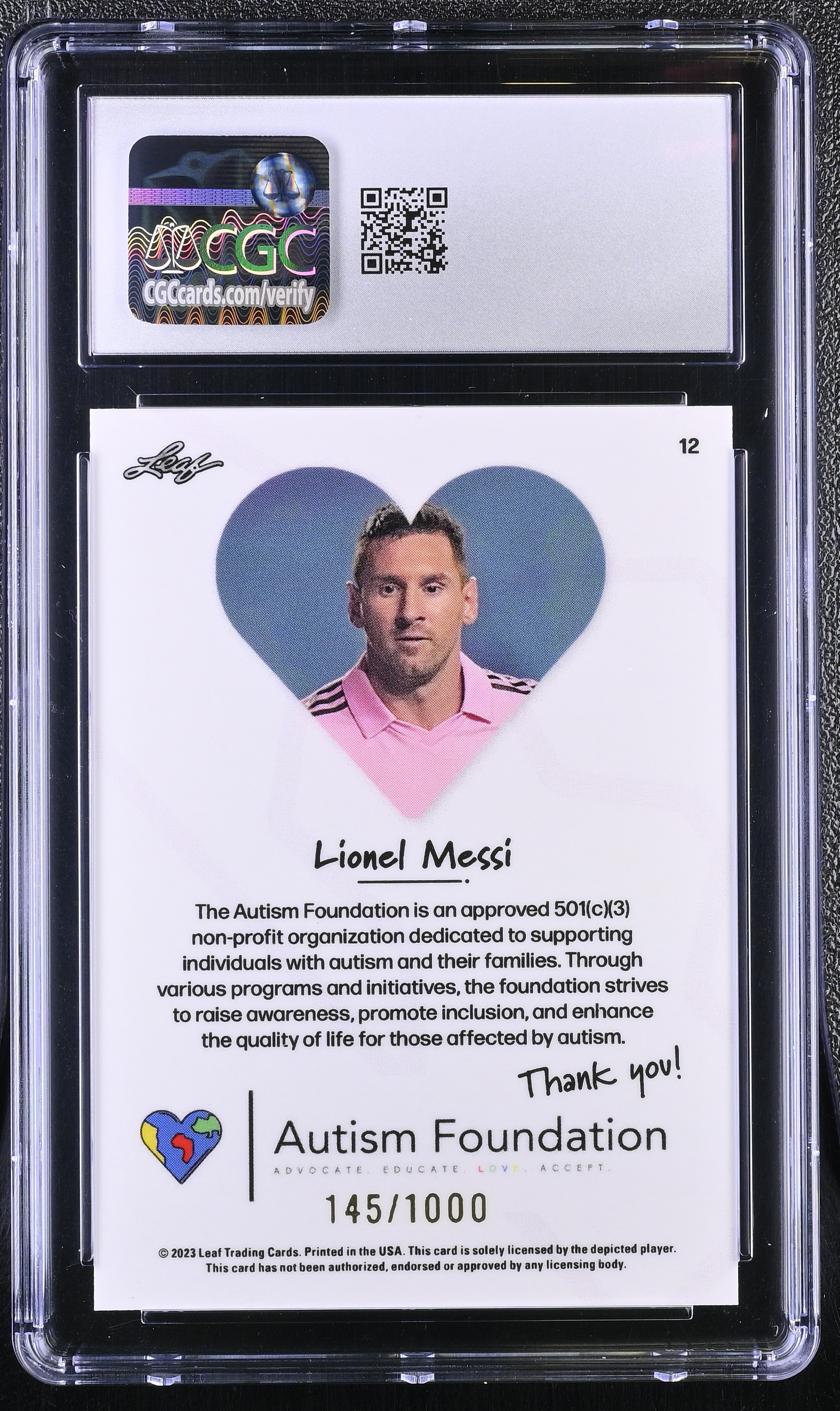 Lionel Messi 2023 Leaf x Autism Foundation #12 #145/1000 (CGC 10)